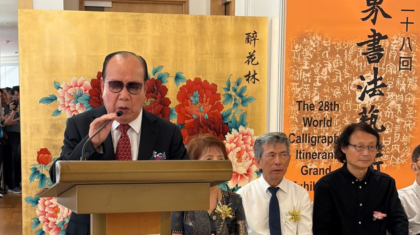 醉花林总理黄海庆BBM在致词中说,醉花林俱乐部和狮城书法篆刻会连续8年联手举办“世界书法大展“,这项展览对世界各地人民了解华族文化,加强彼此之间的友谊,共同促进世界书法艺术水准的提高,起到了积极的推动作用。他也称赞了开幕仪式前新马学生的笔会交流活动,并希望世界上越来越多的青少年热爱传统书法艺术。