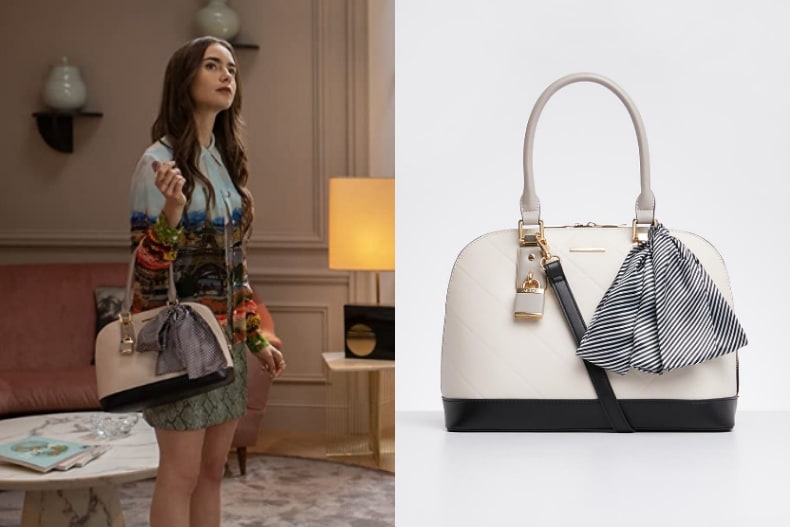 除了Chanel、Christian Louboutin、Marc Jacobs、Kate Spade等精品包包,Lily Collins在剧中其实也有使用价格较亲民的平价包包。