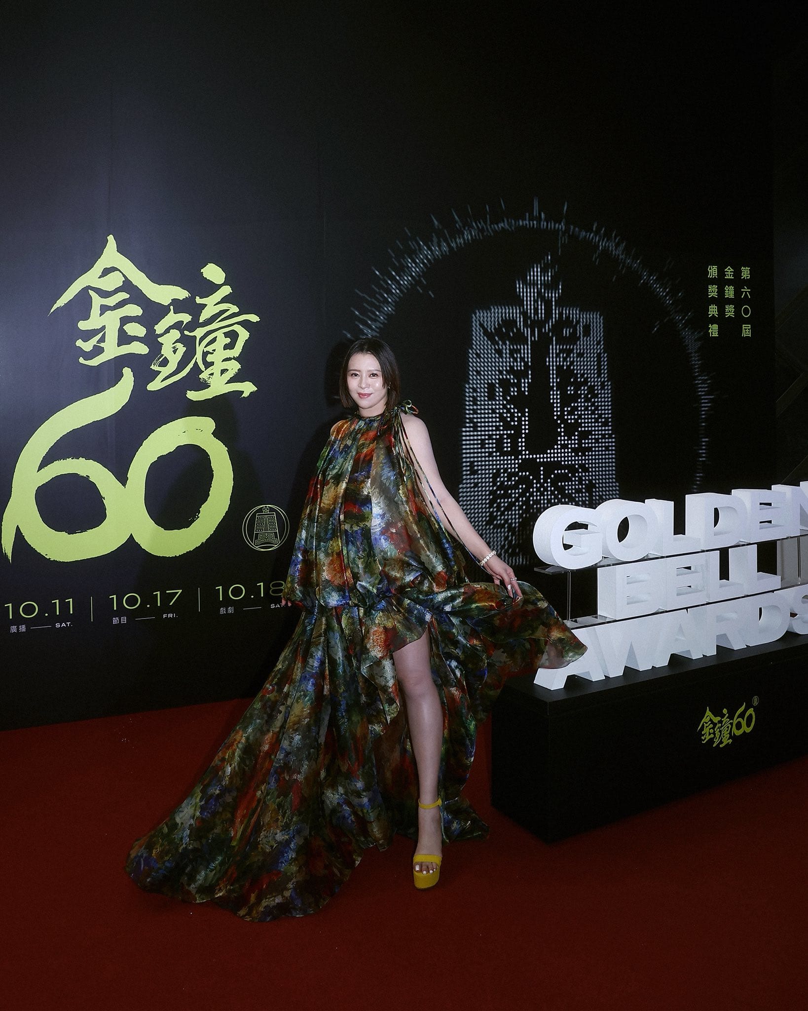挺着8个月孕肚走上红毯的准妈妈刘品言,身穿一袭缤纷印花的垂坠雪纺礼服登场,飘逸轻盈的材质搭配水墨晕染般的印花图腾,营造出明亮而自由的氛围。她脚踩12.5cm亮黄色厚底高跟凉鞋,大胆撞色为造型注入活力与玩心,珠宝则来自Tiffany & Co.。