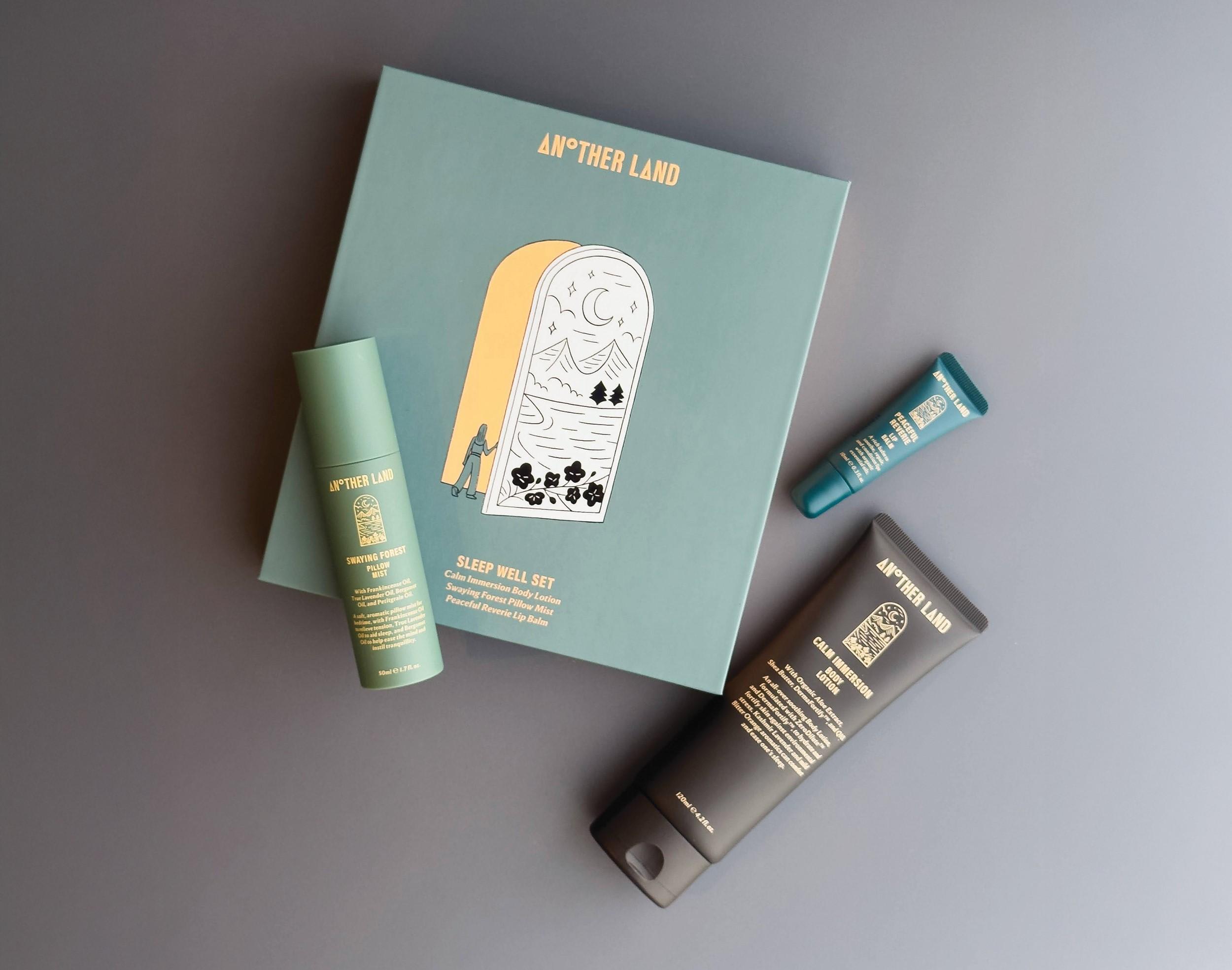 ANOTHER LAND 与日本艺术家小幡彩贵(Saki Obata)合作打造3款限量礼盒,以她独特的叙事风格描绘现代人在都市里追寻平衡的过程。有针对居家、睡眠与旅游的组合,附枕头喷雾、护唇膏、护手霜等单品,适合来临佳节送礼。