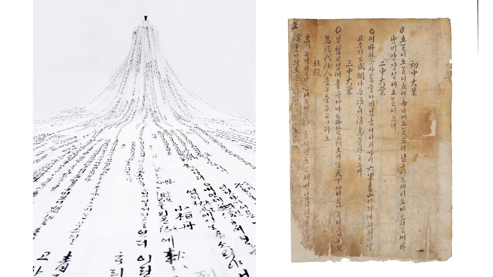 在“Seoul City”旋律流淌之际,Jennie披着一幅长达 15m的雪白薄纱缓缓登场。纱上并非寻常纹样,而是以细致绣工呈现韩国最早歌词集 《青丘永言》中的诗句。