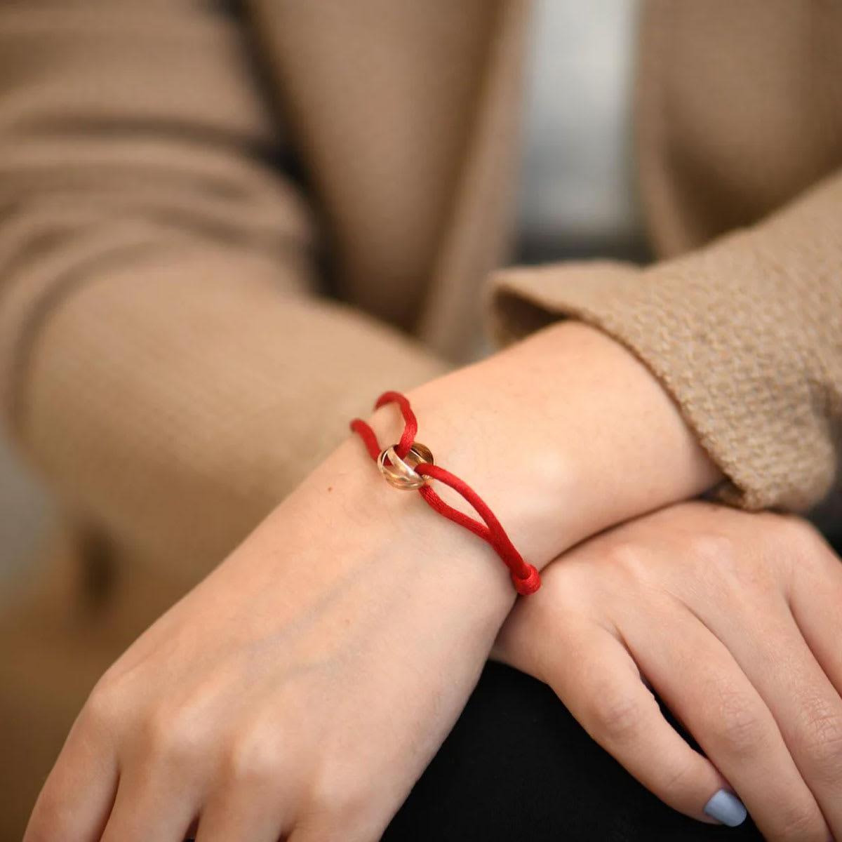 若要替红绳手链找一个最具象征性的起点,Cartier Trinity几乎无可取代。三环交织的设计,白金、玫瑰金与黄金,分别指向友情、爱情与亲情,没有谁凌驾于谁,只有彼此成就。当这个经典符码被转化为红绳手链,反而更显轻盈。佩戴时三环随动作微微转动,就像人生中的关系,无法被固定,却始终紧密相连。红色丝绳象征生命力与情感温度,而品牌提供超过25种颜色选择,也让这款手链成为能随人生阶段转换的陪伴。