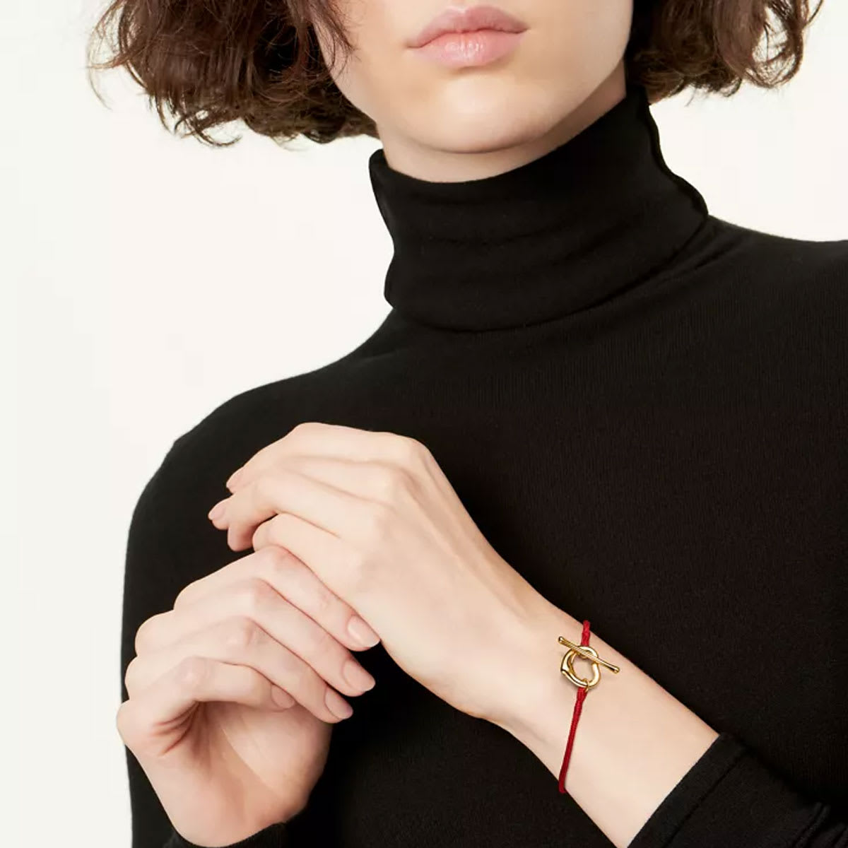 以品牌经典Knot结头搭配红色皮革编织,象征守护与连结,把好运牢牢系在手腕上。没有大Logo但细节满满,单戴优雅、叠戴也很时髦。