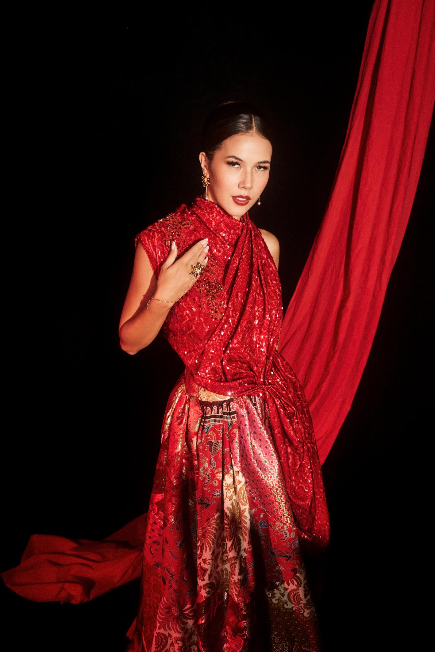 Annika Sager表示:“当我代表新加坡登上世界舞台,我希望展现我们的核心——多元、坚韧并不断进化。国服和晚礼服都提醒着我:我们能够在扎根传统的同时,以优雅的姿态迎向未来。”