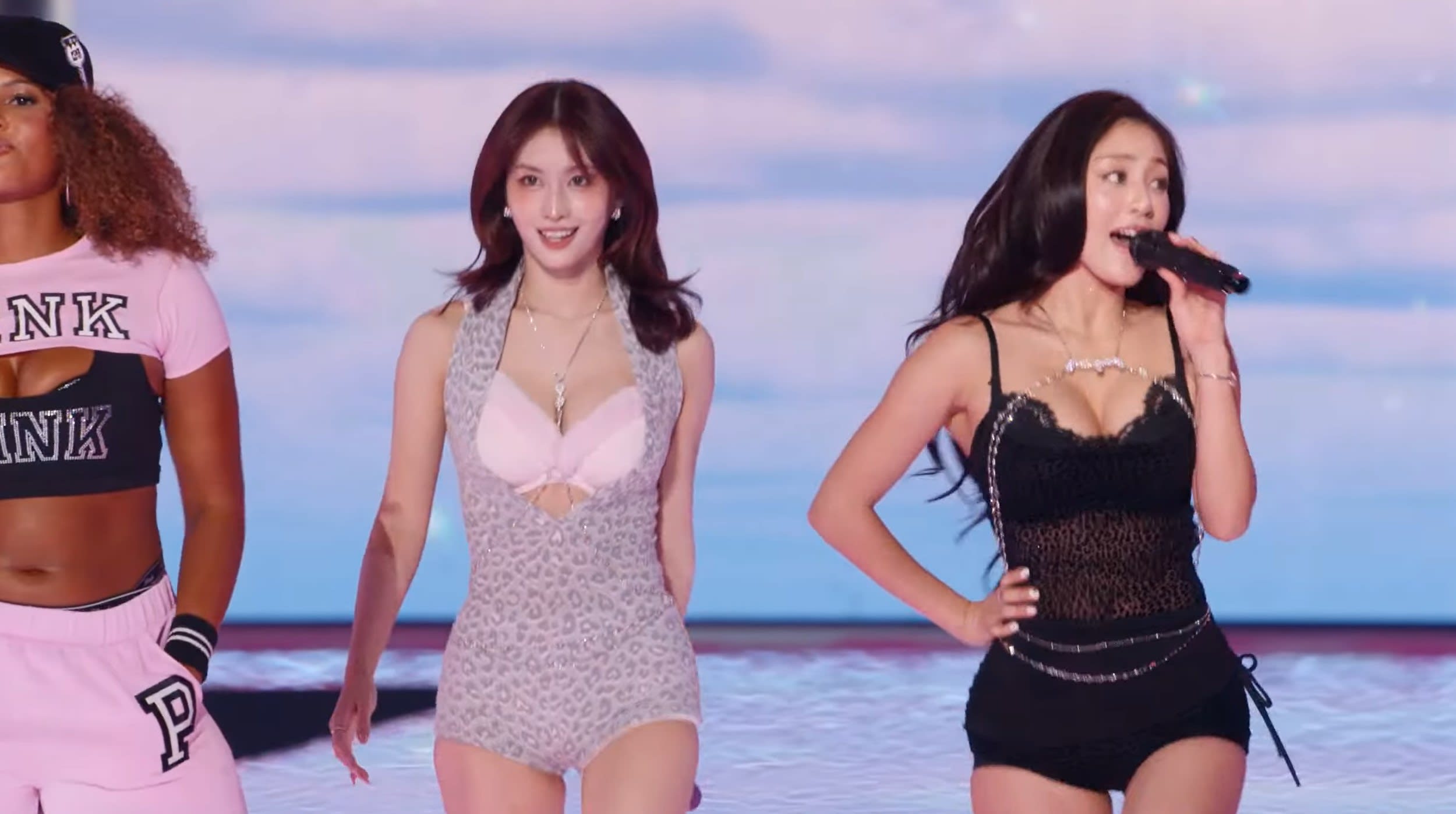 TWICE是这场全女表演阵容中的第2组嘉宾,前有Madison Beer,后接Karol G。TWICE的4成员演出了“THIS IS FOR”以及“K-Pop Demon Hunters”夯歌“STRATEGY ”,并配合主题穿上Victoria's Secret内衣搭配毛靴,辣度破表!