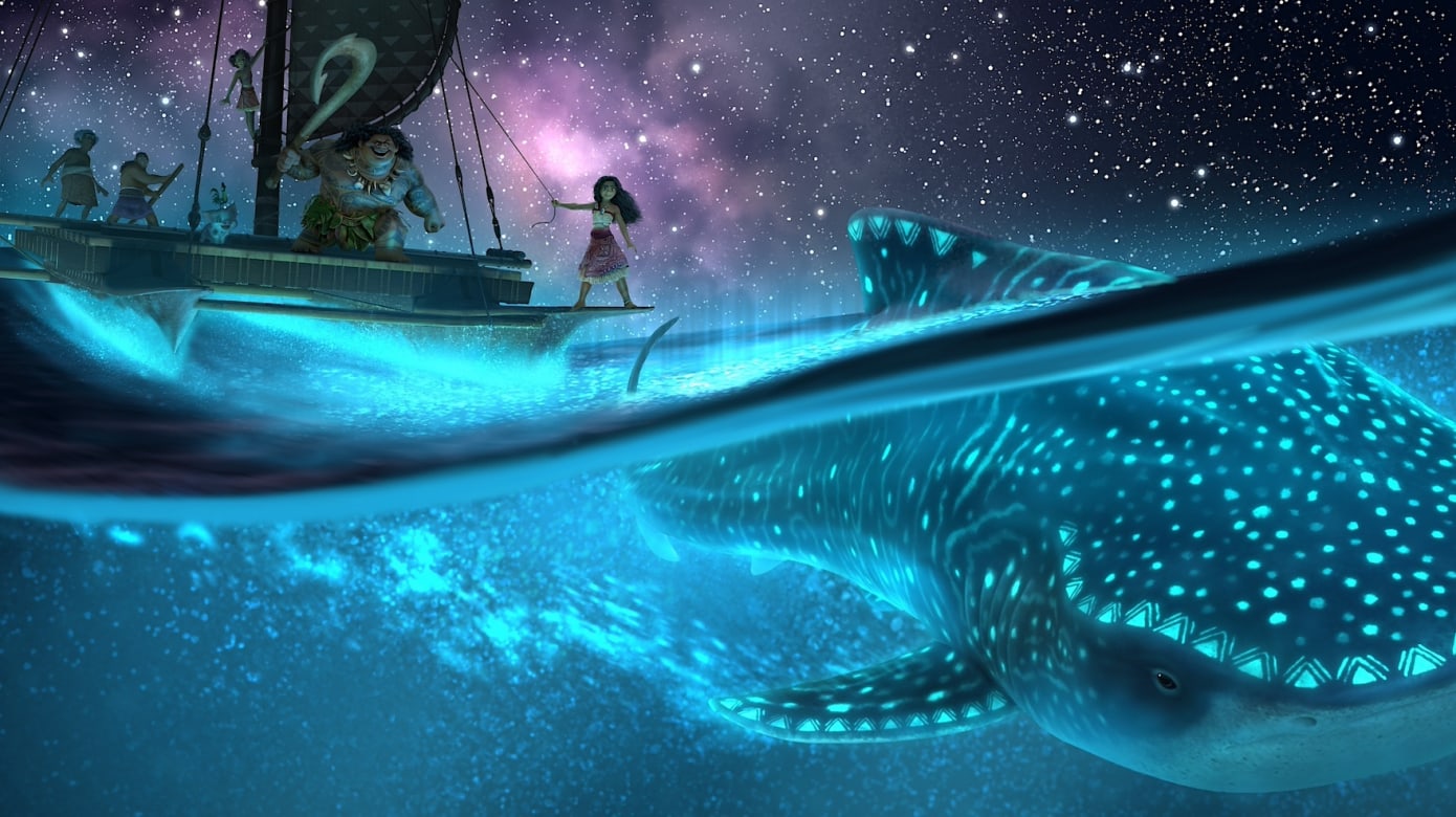 一次祖先显灵,Moana从中得知,原来风暴之神Nalo为了操控凡人的力量,将衔接所有岛屿的传说之岛Motufetu沉入海底,破坏各岛居民之间的联系。