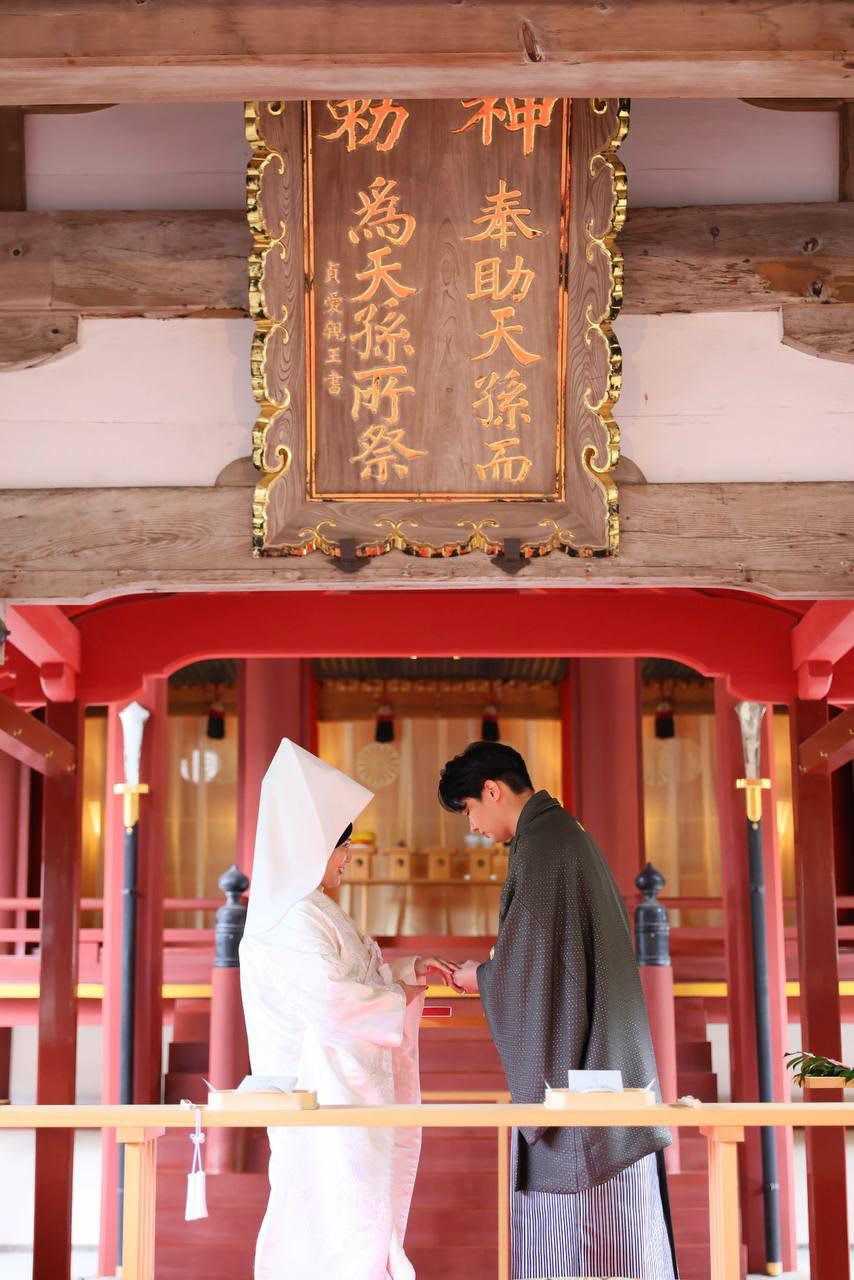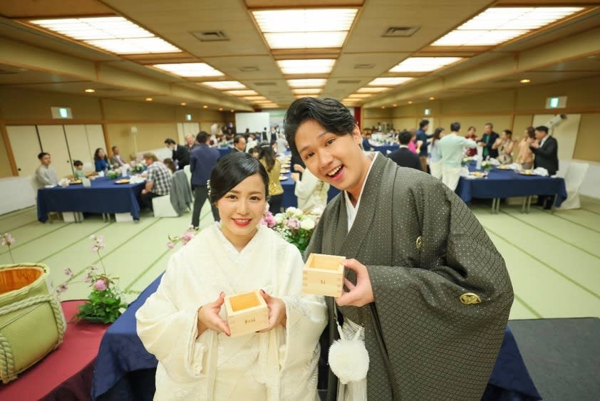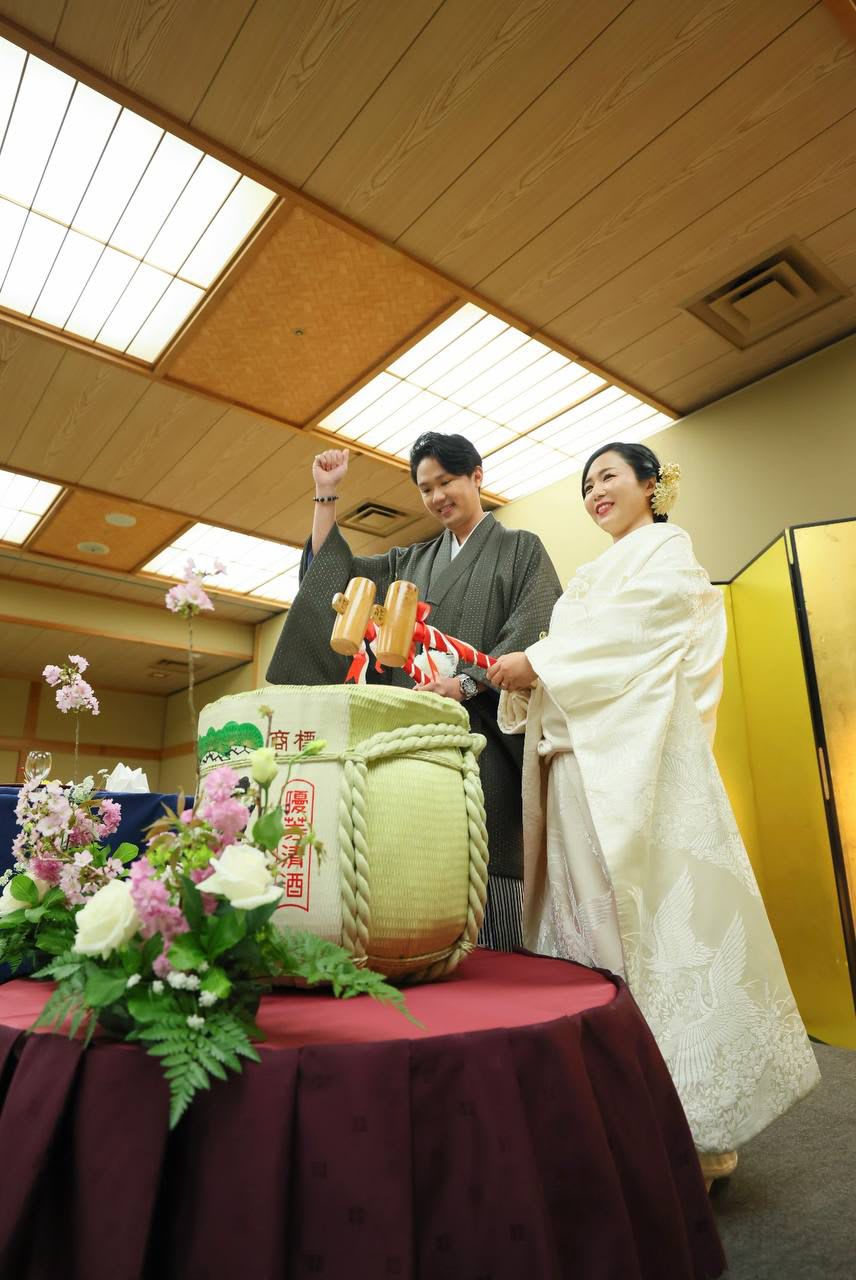 由于Mami是日本人,这场婚礼特别遵循传统日式婚礼形式,在细节中流露出浓厚的文化韵味与仪式感,整体氛围典雅内敛,庄重而温柔。
