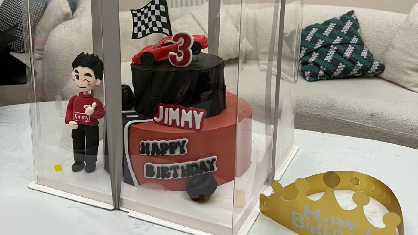 陈若仪献上赛车造型的蛋糕,她献上温馨祝福:“希望你平安健康,开开心心美一天。”同时感谢《披》剧组一起用心安排的惊喜。