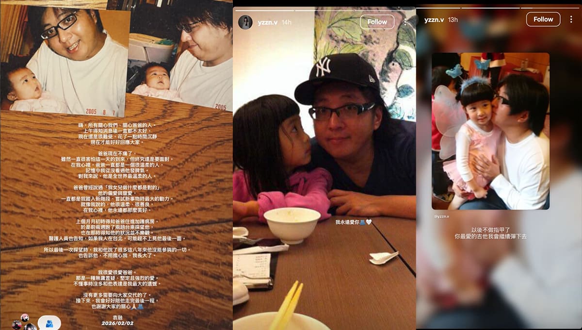 (综合讯)资深音乐人“小胖老师” 袁惟仁不敌病魔,昨天(2日)病逝,享年57岁。他的女儿袁融稍早再度发文,回忆父亲昔日的宠爱与教导,感性许下“下辈子还做你女儿”的愿望,也下定决心表示:“以后不做指甲了。”