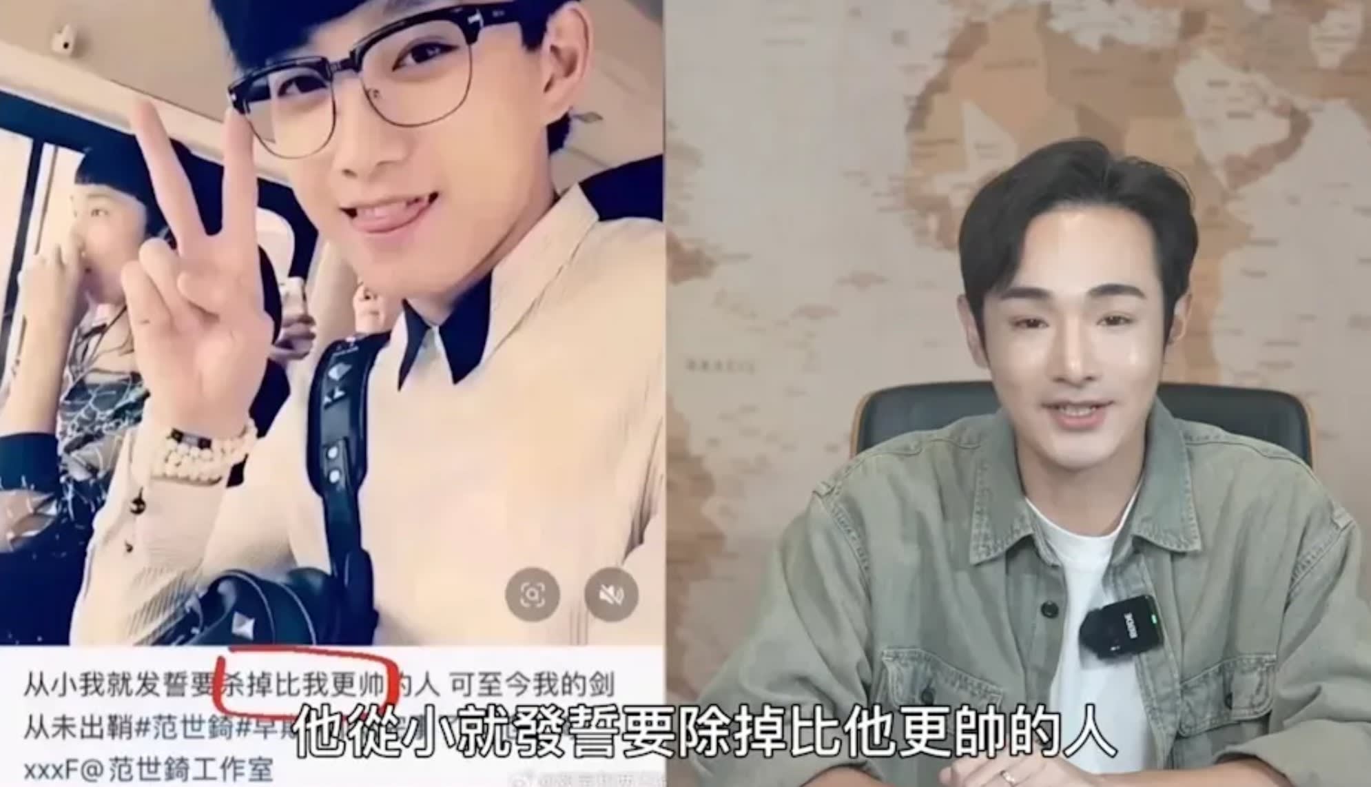 中国男星范世锜卷入于朦胧坠楼事件,继网友截图指他发文承认杀害于朦胧,甚至说出“他该死”等话,近日网红“八炯”挖出范世锜过去的社媒留言,发现他曾经写下“从小我就发誓要杀掉比我更帅的人,可至今我的剑从未出鞘”,看得网友毛骨悚然。
