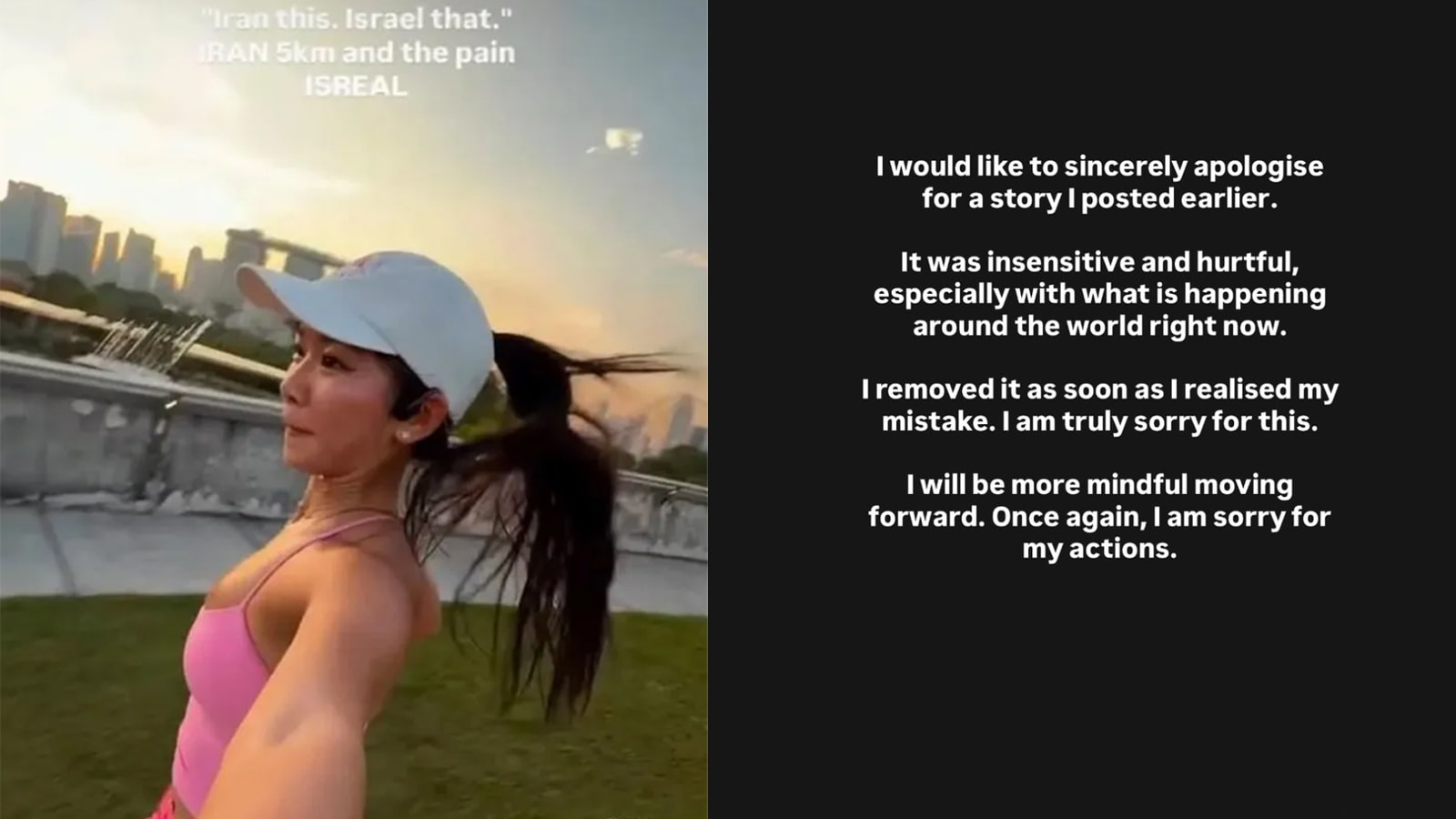 本地健身网红Novita Lam因拿中东冲突开玩笑引发争议,随后发文道歉。