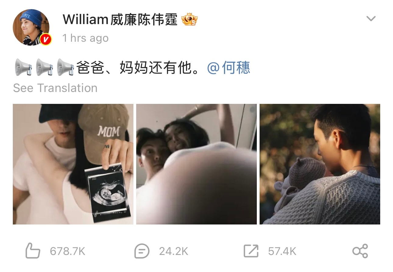 (综合讯)陈伟霆、何穗惊喜宣布当爸妈了!