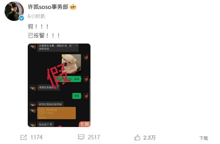 针对一连串爆料,许凯透过工作室发文澄清,强调他目前单身,“网传谣言涉及的艺人与许凯先生早年有过短暂交集,早已无联系,网传聊天记录存在伪造内容,我方已报警处理。”