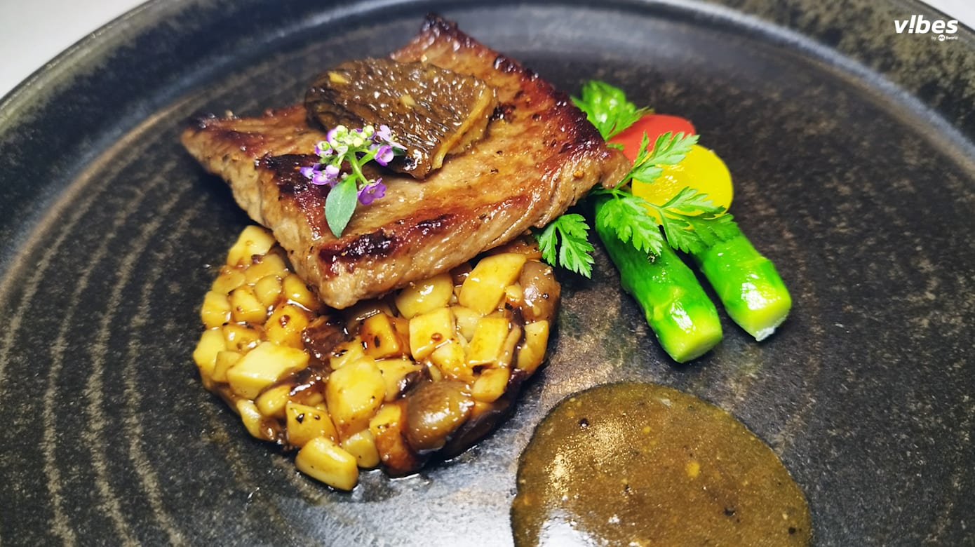 带有西式风味的菌菇海盐香煎A5降霜和牛肉($52/单人),以简练的烹调呈现优质食材的本味。牛排厚度适中,与菌菇的比例恰到好处,火候掌控和调味更胜部分专业牛排西餐厅。可根据喜好定制牛肉的熟度。
