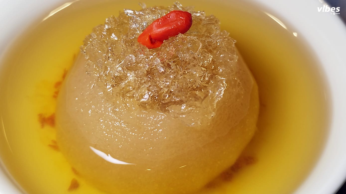 鱼生、汤品和面食之外,最后的甜品燕窝桂花炖律梨($32/单人)同样令人惊艳。梨子清新脆口,甜汤甘醇温润,在新加坡炎热的气候里,格外消暑解腻,让人饮后心情豁然开朗。