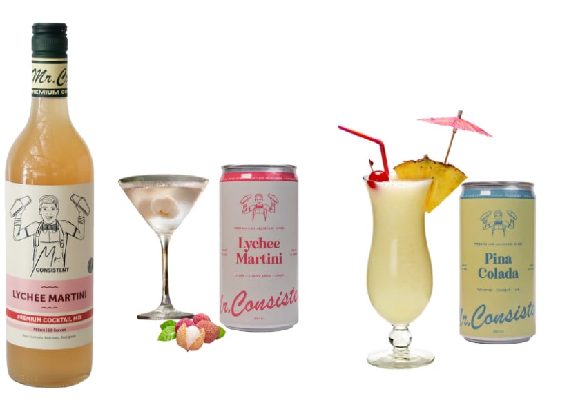 特别推荐Mr Consistent Mocktails($27.80/ 750ml瓶装;$19.90 /4罐装)无酒精鸡尾酒,有Margarita、Pina Colada、Lychee Martini等经典调配,没有酒精也欢乐。
