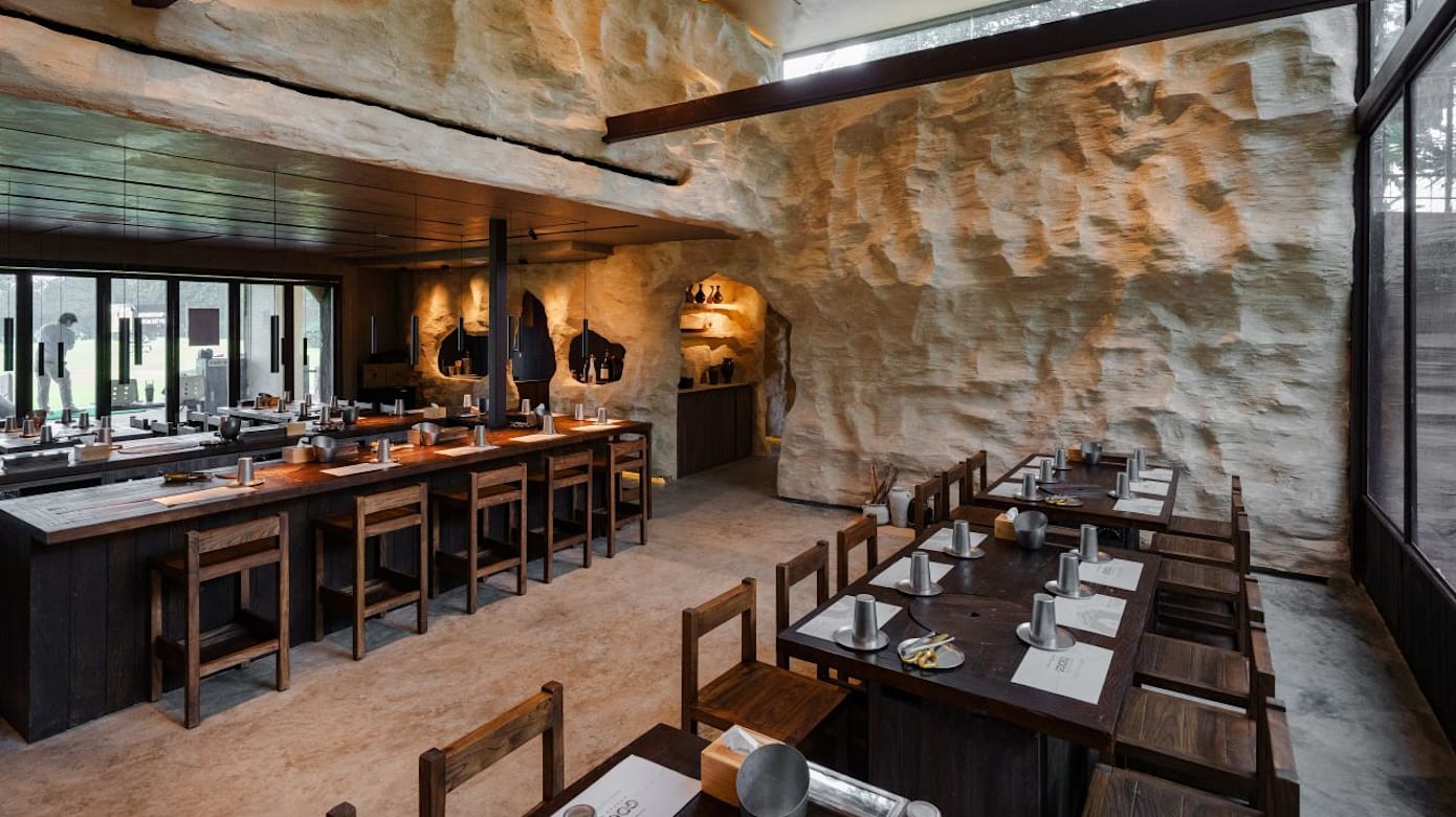 当你眺望着周围绿意、置身在以“洞穴”为装潢、充满原生态氛围的环境中,品尝一道道正宗独特的韩式料理是什么样的体验?