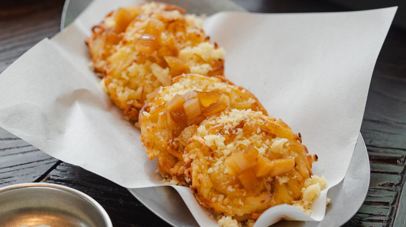 有别于大部分韩料餐厅一整大片的韩式煎饼,这里呈现的是小片煎饼,适合同桌共享美味。酥脆中满满融合马铃薯和芝士奶香,还能吃到薯丁,增添口感。