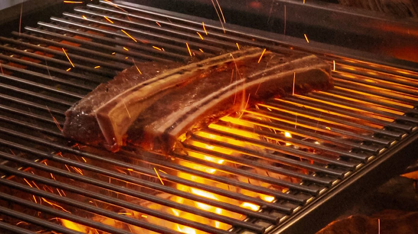用橡木明火炭烤,可选择腌制及刷上特调辣味或咸甜风味的酱汁的猪肋排,端上餐桌后,在无烟烤炉保温的同时,还能再裹上一层层拉丝芝士。锁住肉汁的同时,丰富美味层层迸发在口腔里。
