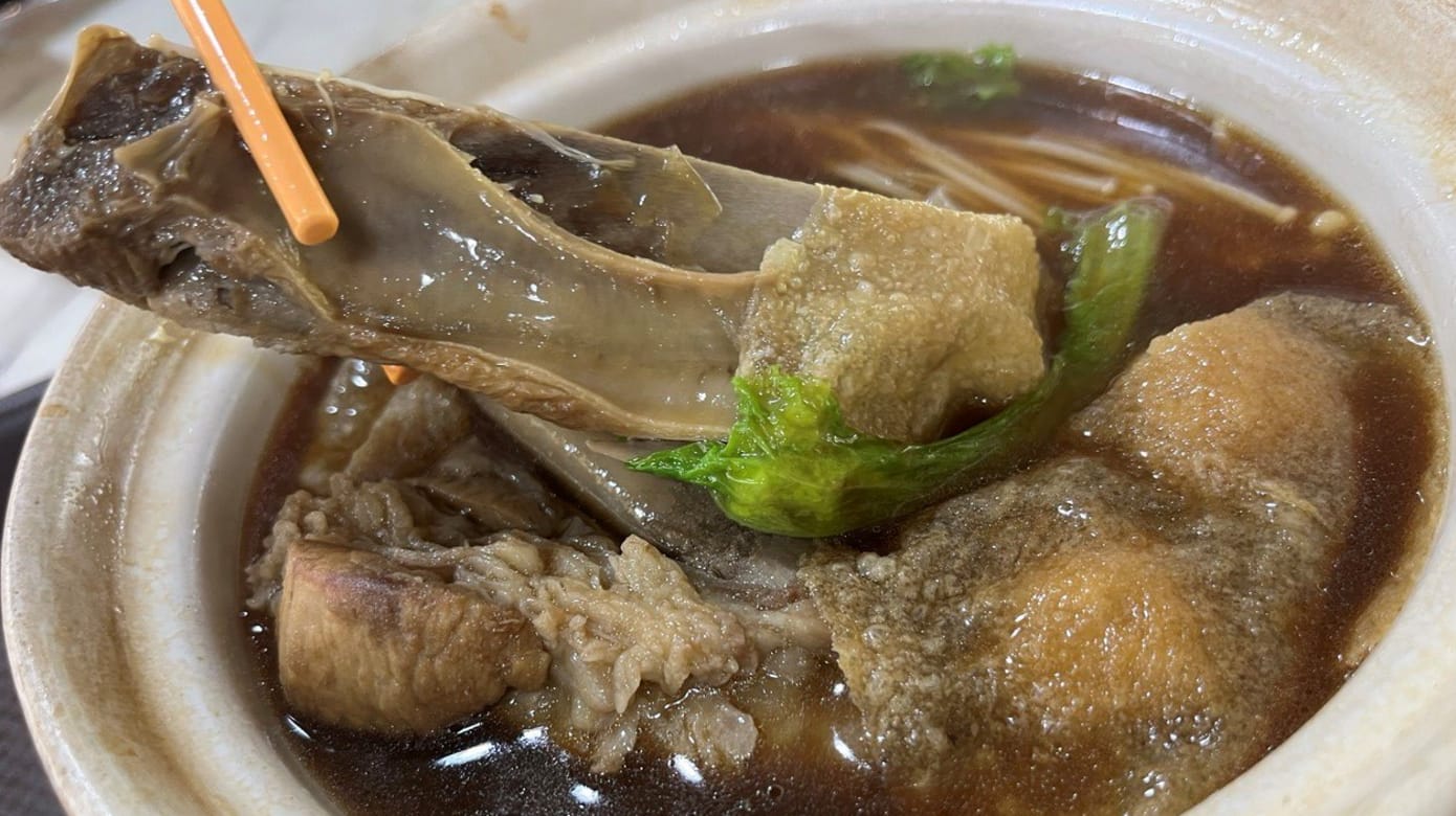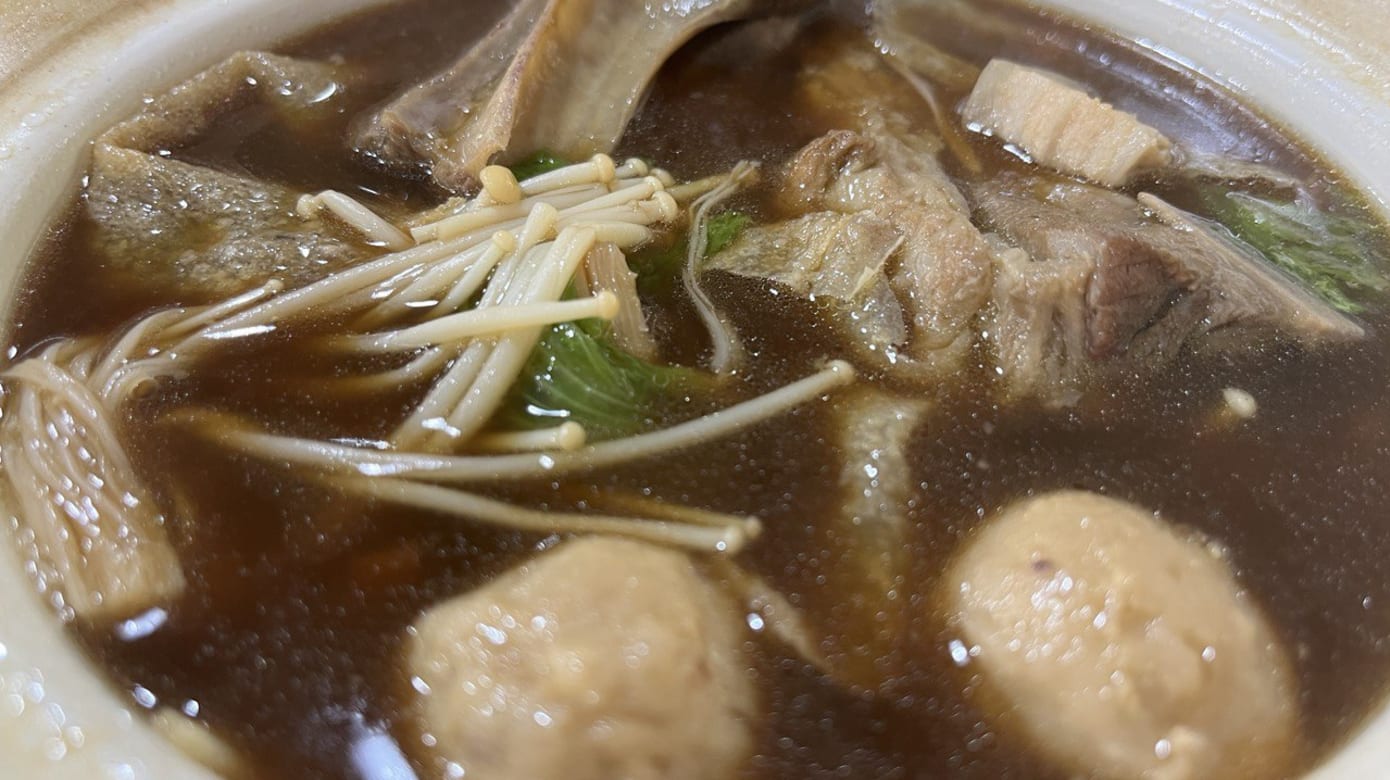 记者以顾客身份光顾了江伟的这道招牌料理,感觉肉骨茶药材浓淡恰到好处,汤头也清甜够味,材料给得很足,一份$6.80的肉骨茶可以吃到两大块肥瘦适宜的肉骨、几片五花肉和猪肚、豆皮、金针菇、生菜和猪肉丸,还可以免费加汤一次。