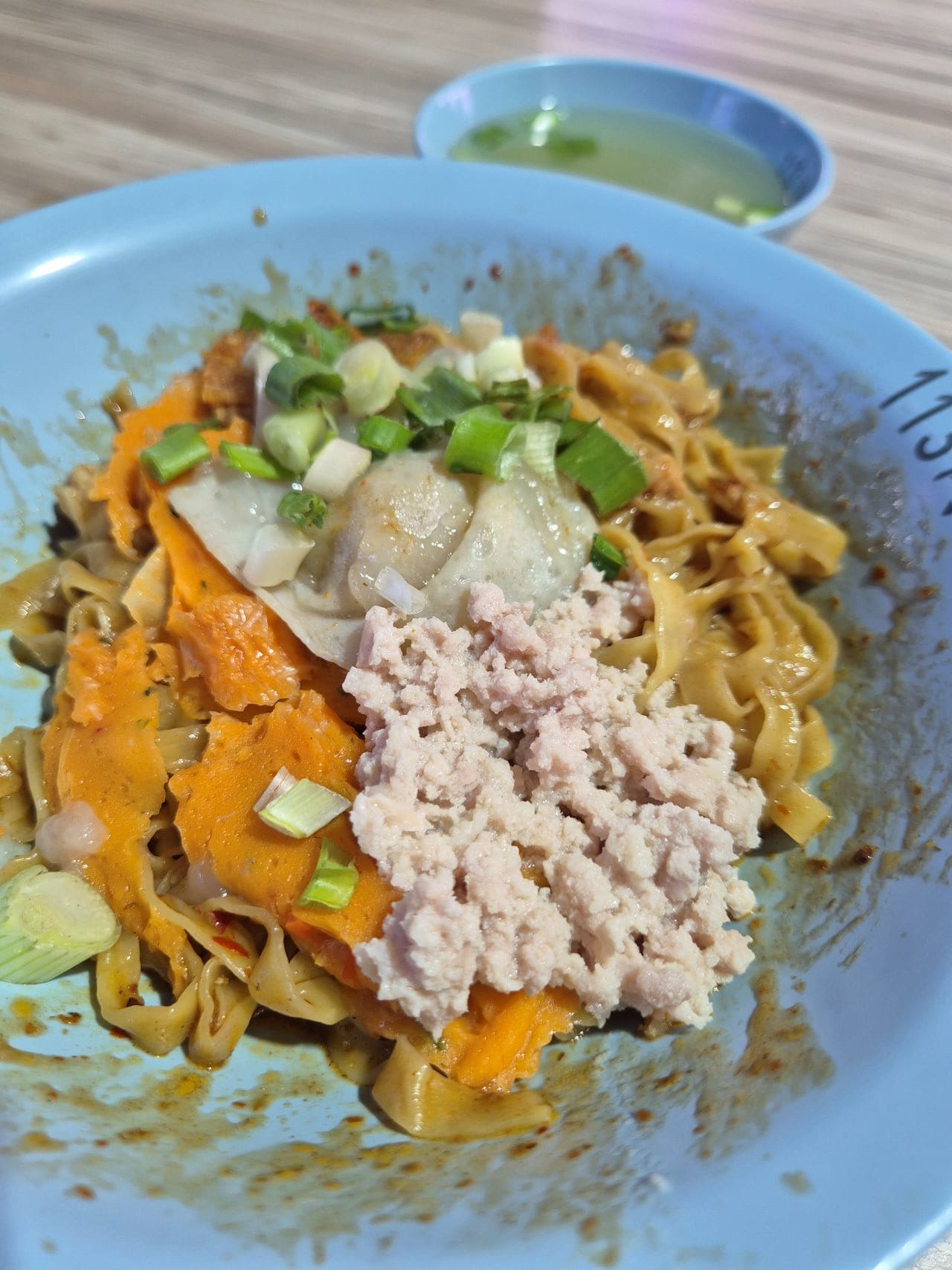 软硬度恰到好处的面条均匀裹满特调的Sambal酱汁,咸辣平衡,少许的醋香也完美融合其中。