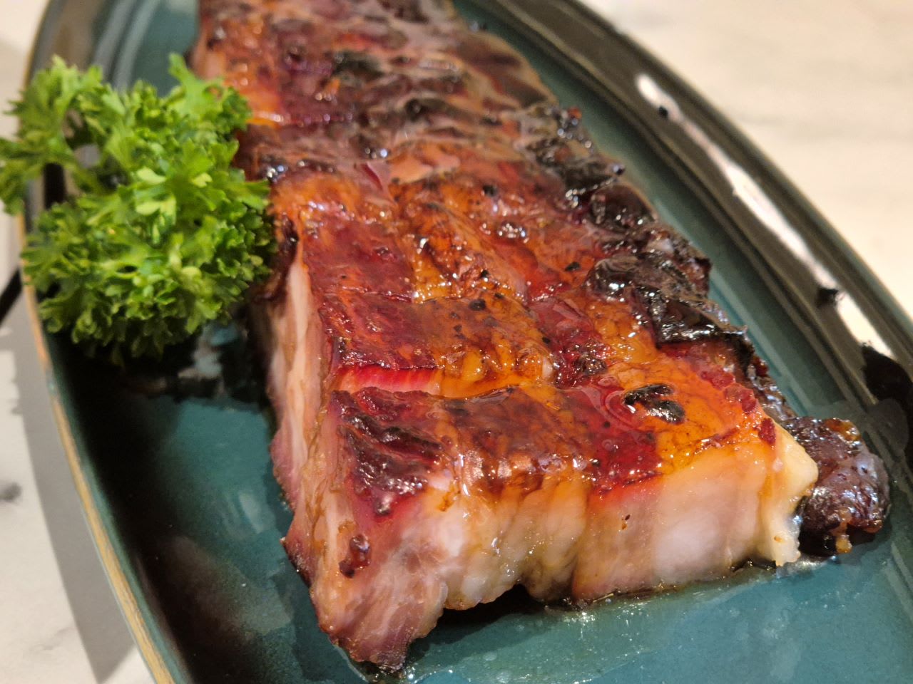 腌制超过12小时、烘烤约40分钟,才呈现出的口感:外层焦香、内里油润,甜咸风味、油脂布满口腔,想要减肥者得“慎吃”!