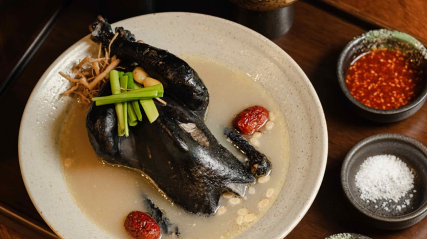 有胶原蛋白参鸡汤($35)、紫苏籽参鸡汤($38)、黑芝麻参鸡汤($38)、黑鸡参鸡汤($37)、美容参鸡汤($37)和解酒辣参鸡汤($37)。搭配特色小菜,饱餐一顿不是问题。