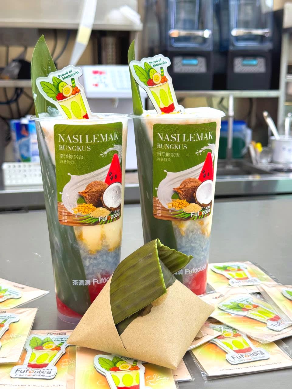 8月是新加坡和马来西亚的“国庆月”,马来西亚人气本土饮料品牌~茶满满Fufootea又来搞搞震,这次推出的限定饮料,8月8日上新,还送限量版冰箱贴。当天起,只要你敢敢带一包椰浆饭来,店家就敢敢换一杯南洋椰浆饭消暑特饮(RM19.90,约S$6)给你!