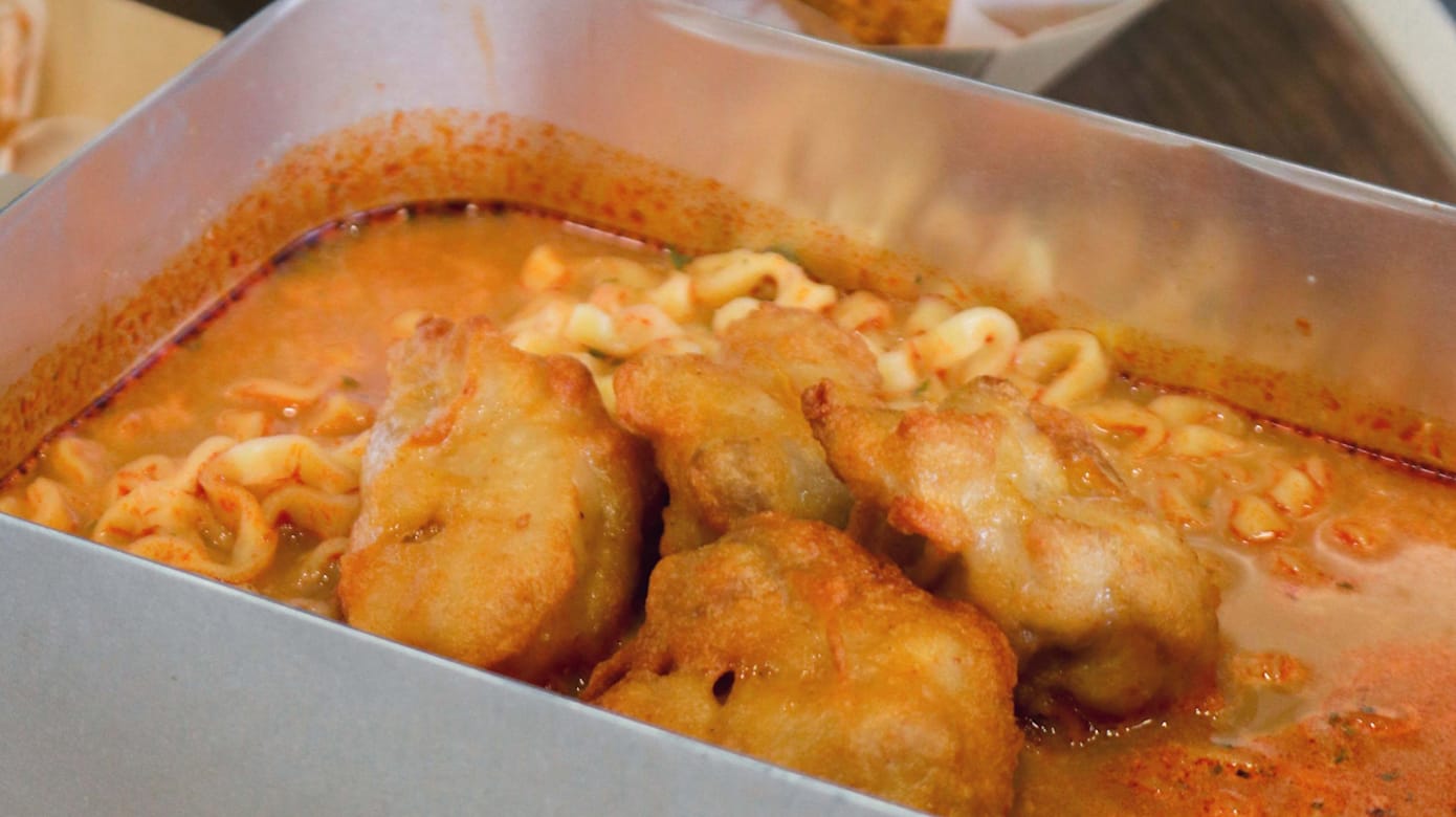 除了烘焙,店内还供应多款露营风格热食,包括韩式拉面、炸鸡翅、水饺等。