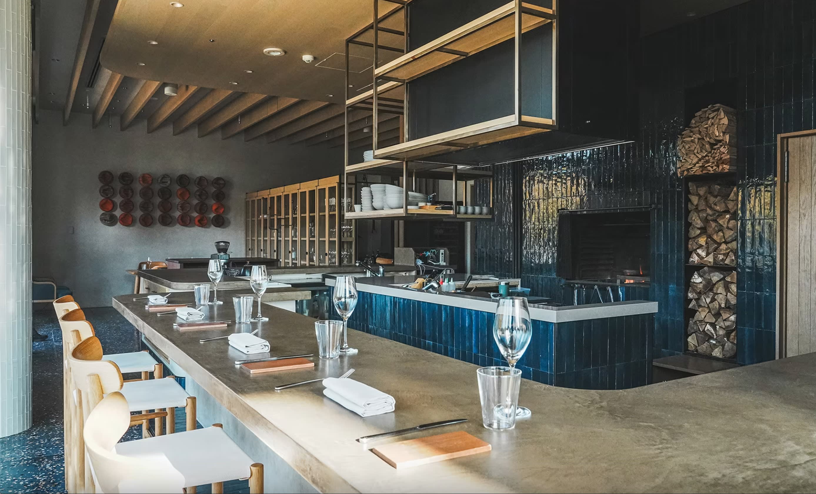 餐厅除了一般餐桌与共享长桌外,也设吧台座位,让食客近距离欣赏厨师的料理过程。餐厅不接受订位。
