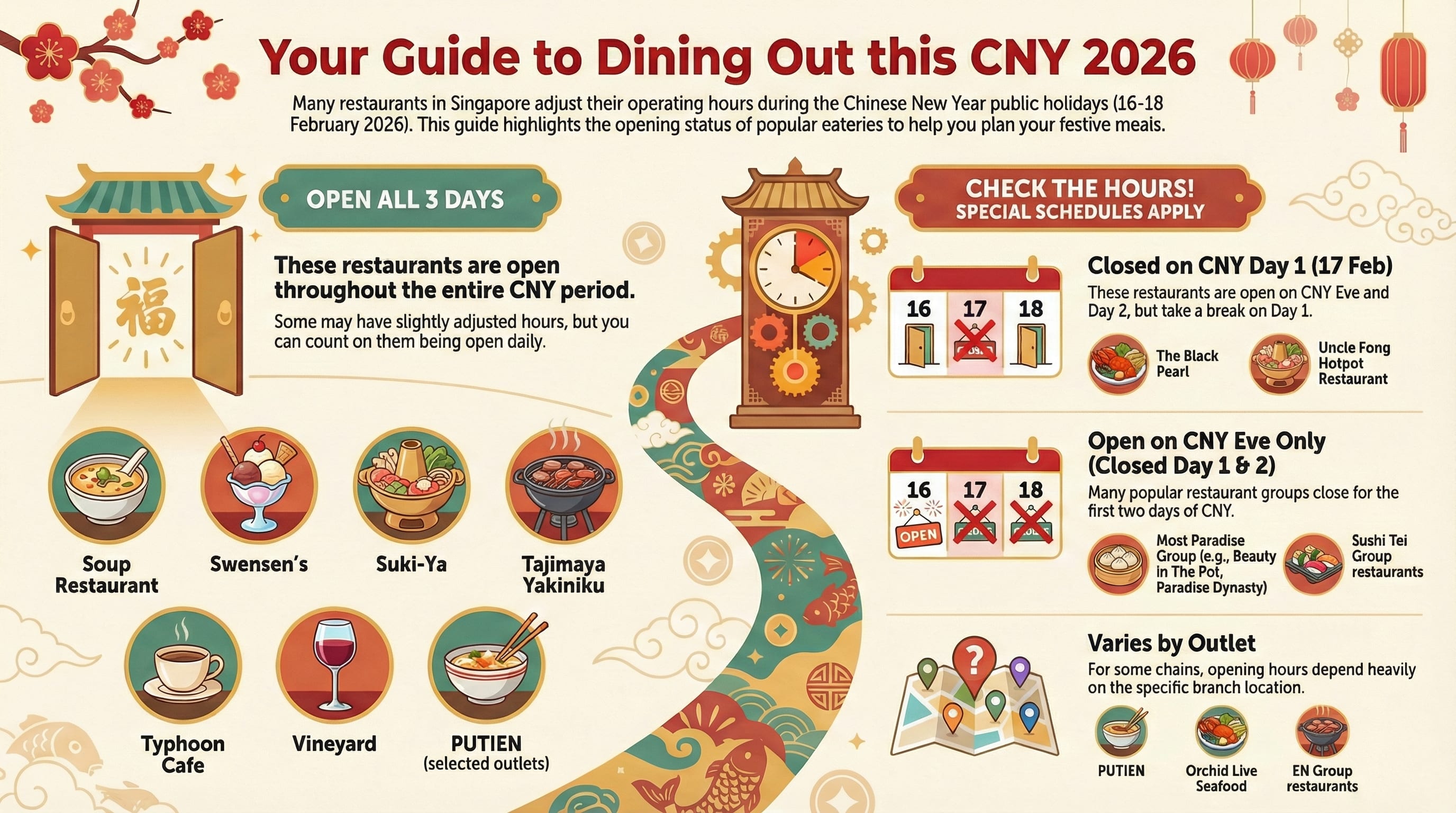 这些餐厅在 2026年2月16日(除夕)、17日(初一)及18日(初二)均开门营业。
