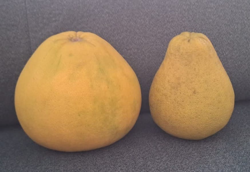 怡保柚子(左)和台湾文旦。(摄影:高明)