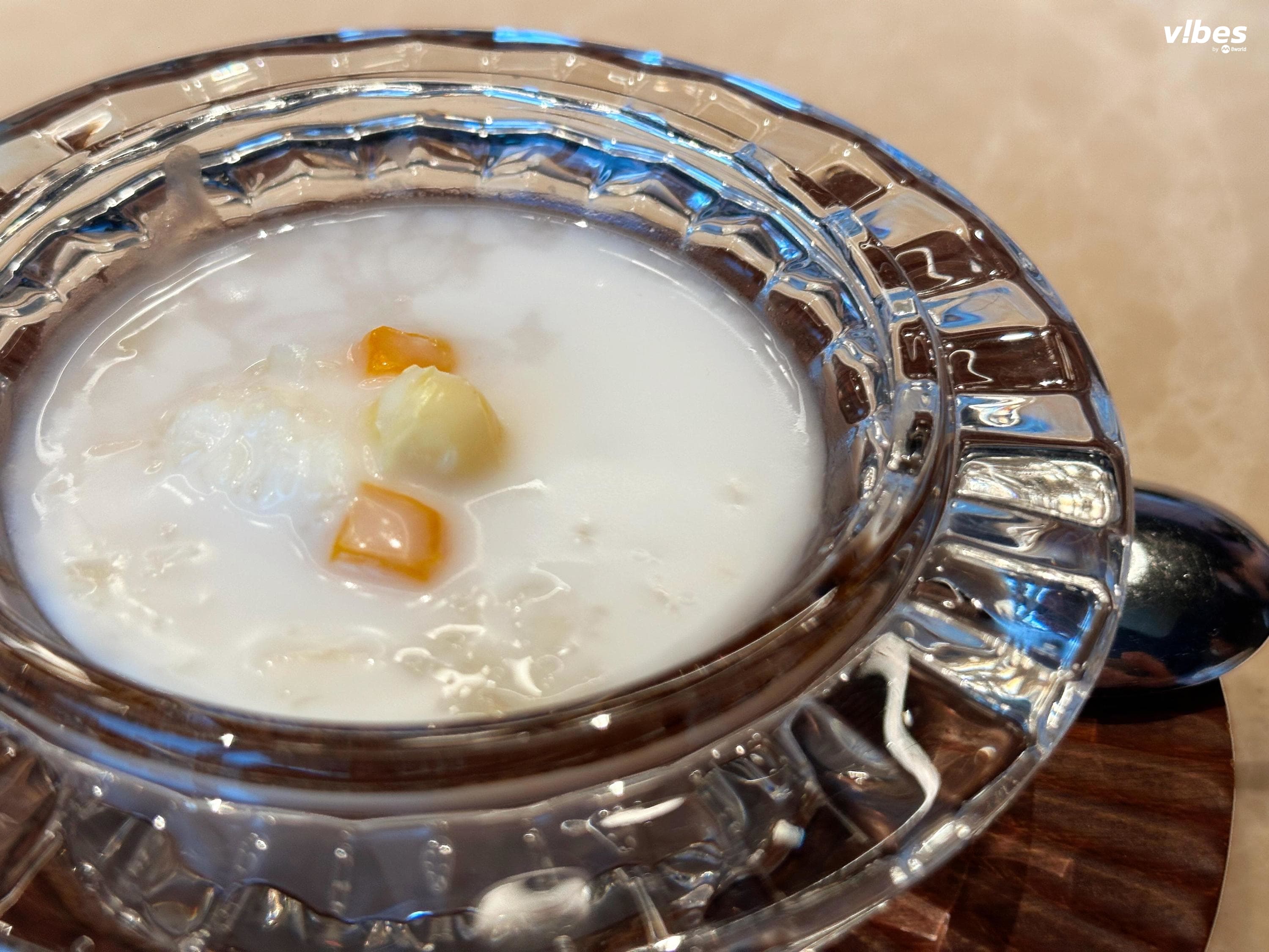 甜品潮州芋泥马蹄(Teochew Yam Paste with Water Chestnut)以绵密芋泥包裹清脆马蹄,甜而不腻,为盛宴收官。宴毕,更奉上吉祥如意年糕(Auspicious Sticky Rice Cake),将团圆祝福延续至家。