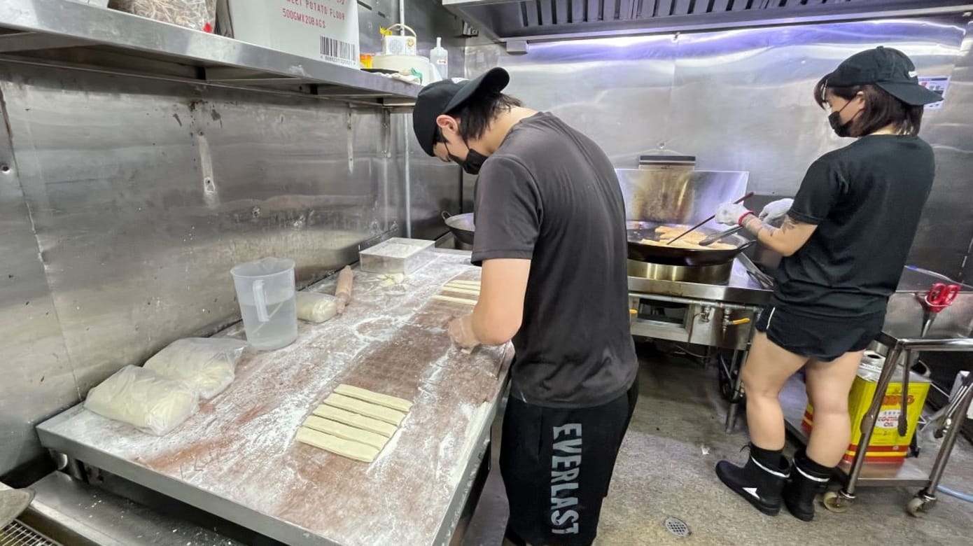 从调粉到油炸,Evan对每个细节都很讲究,之前没有餐饮业背景的Clara,也花了半年才学好当中油炸的技巧和火候的掌控,过程中双手更因此受伤了几次。