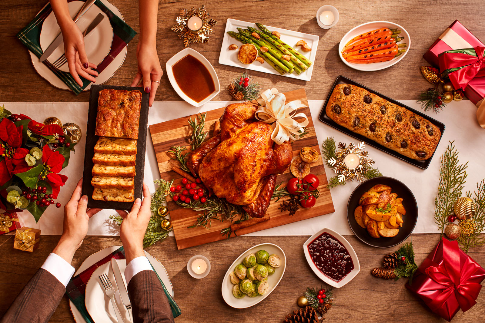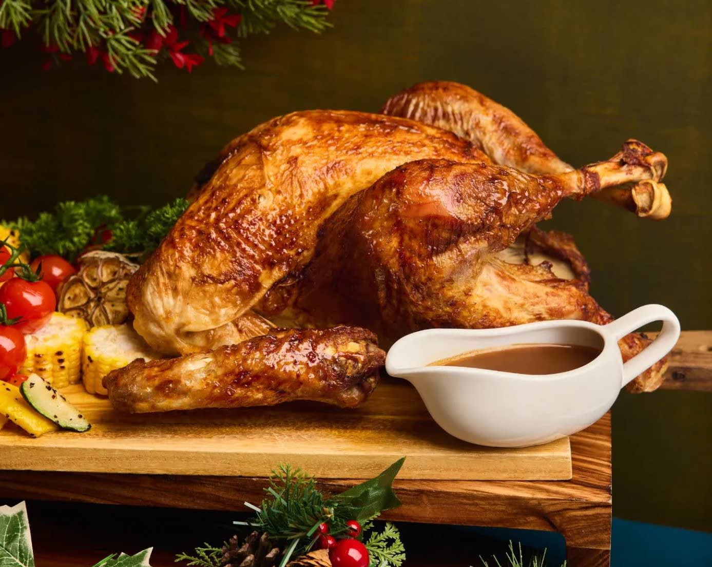 Grand Hyatt Singapore:大堂层的精品店“The Shop”也备好了节日美味。香草烤雄火鸡(Herb Roasted Tom Turkey)搭配火鸡肉汁和陈年香醋蔓越莓酱,带来酒店级的家常盛宴体验。