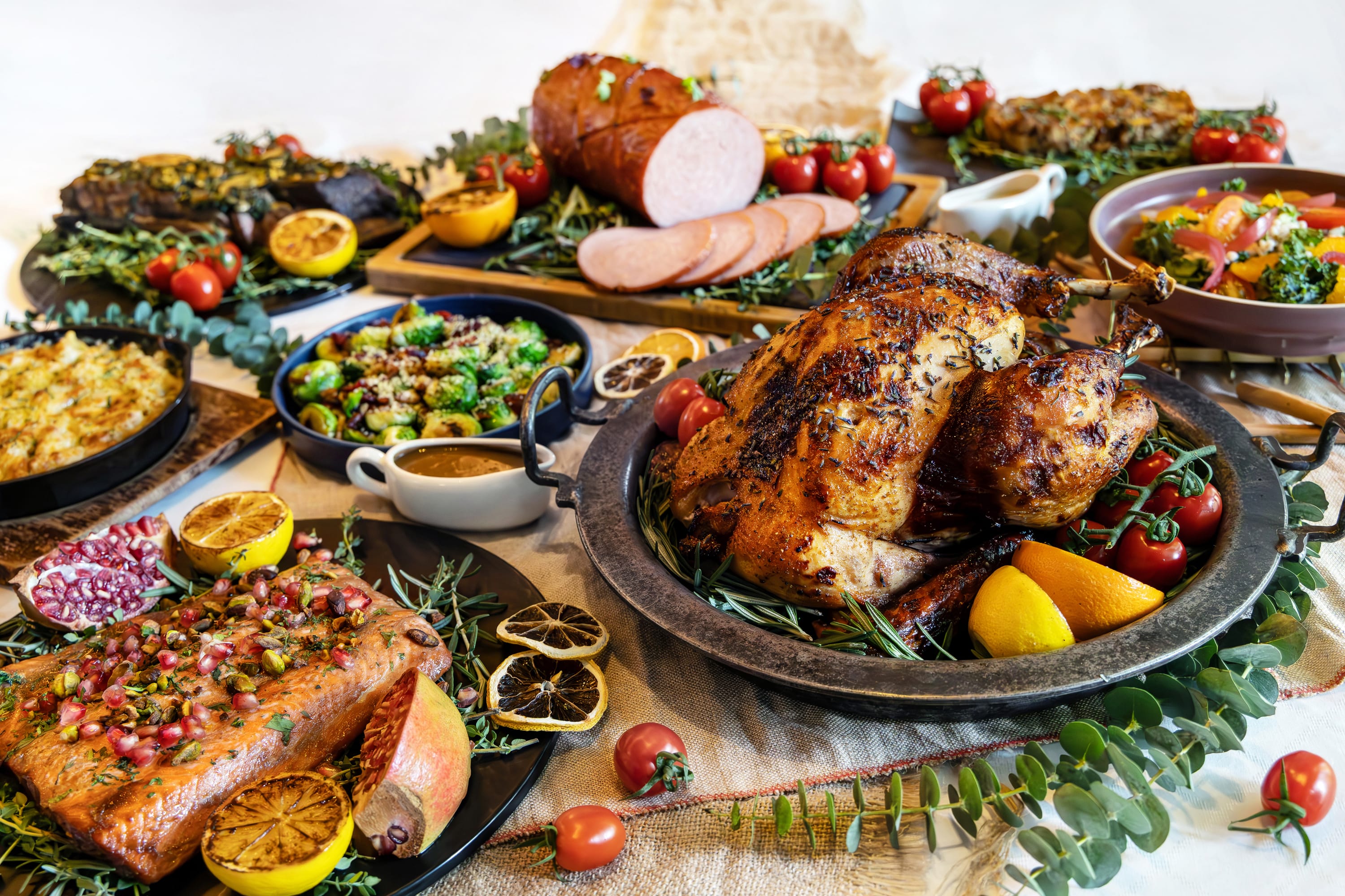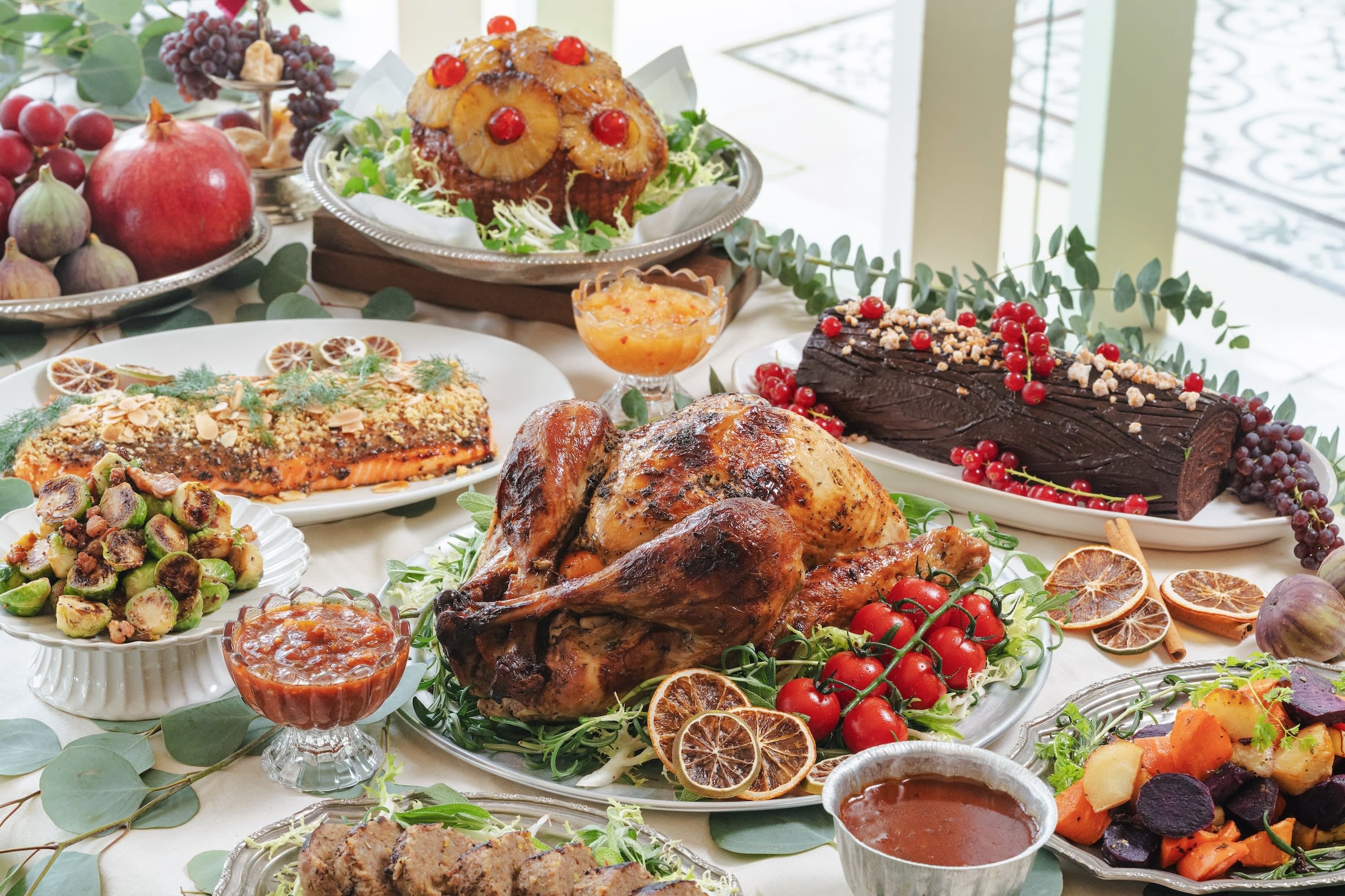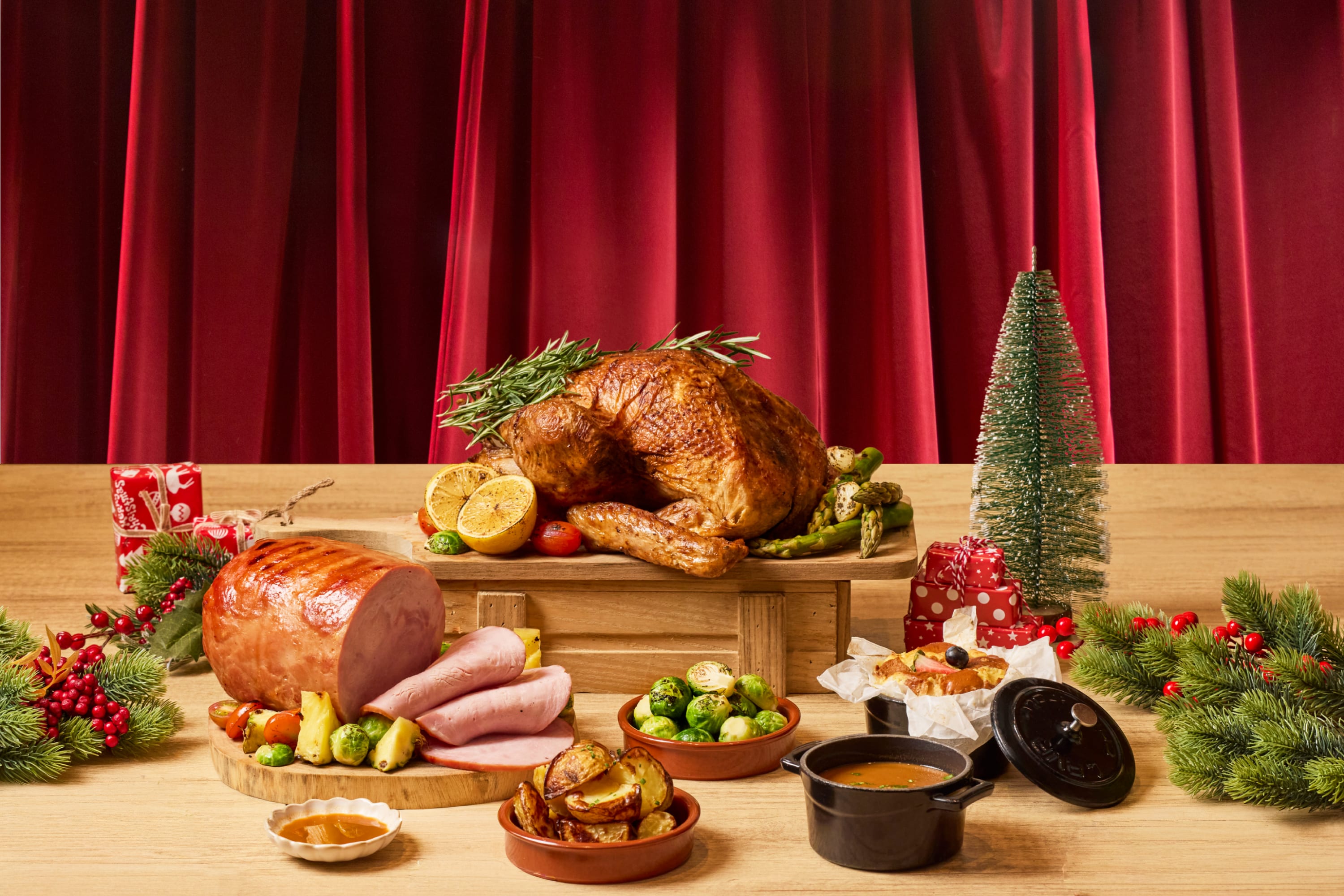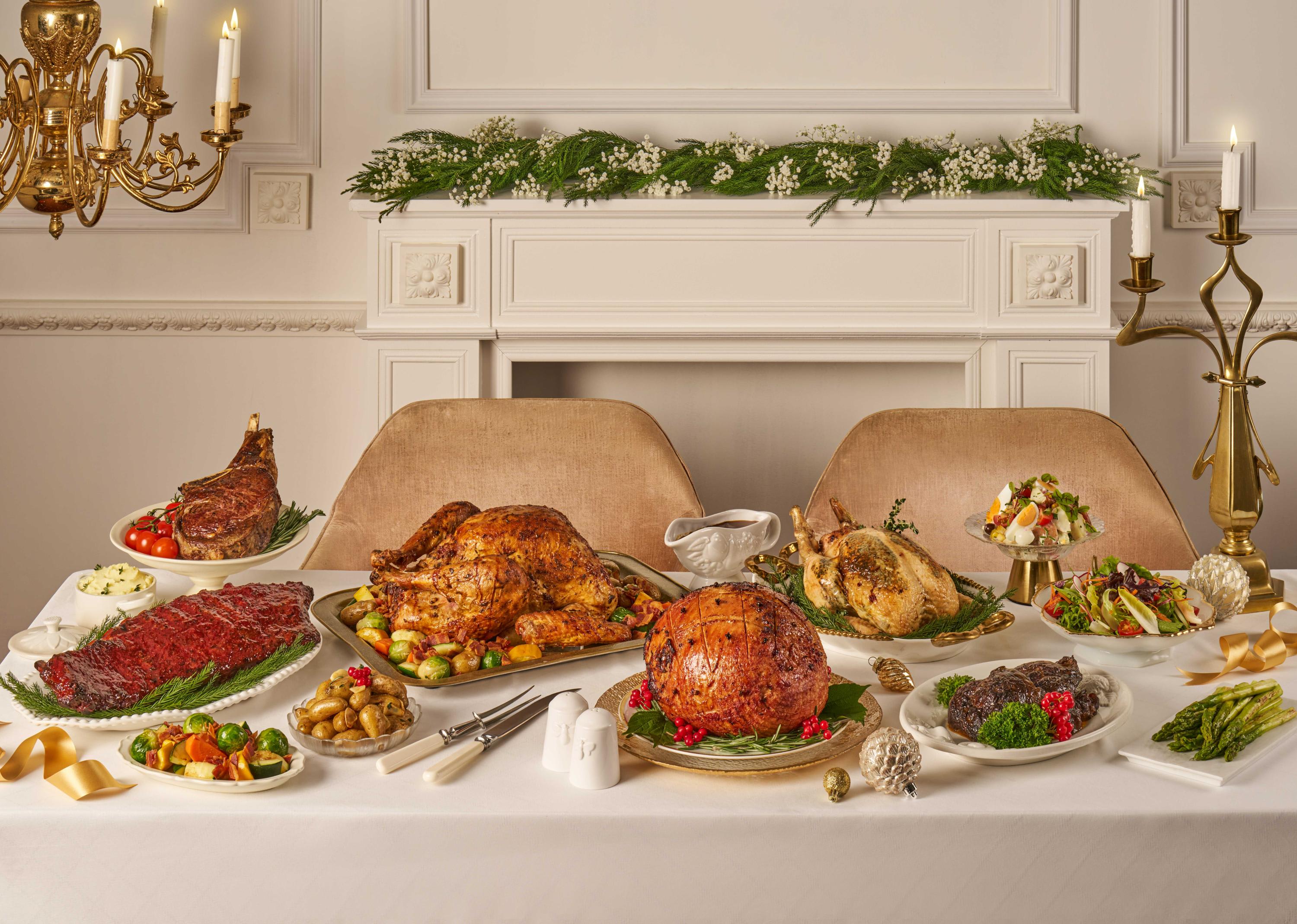 火鸡也可搭配成套餐享用更划算,如原价约$300的The Classic Feast($240)包含这款火鸡、两款配菜及一个伯爵茶山核桃树桐蛋糕(Earl Grey Pecan Log Cake),适合2至4人;原价$598的The Grand Celebration($460),同样包含这款火鸡、澳大利亚牛小排(Australian Short Ribs with Gremolata)、波旁杏子釉火腿(Bourbon & Apricot Glaze Ham)、3份配菜和一个巧克力橙子树桐蛋糕(Chocolate Orange Log Cake),适合6至8人)。