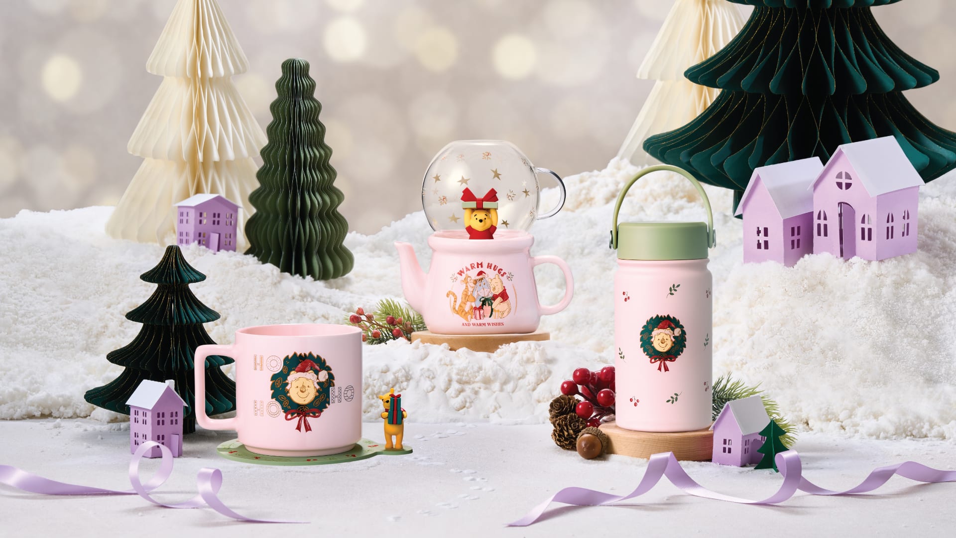 这个圣诞季,小熊维尼迷们不容错过这些特别版节日礼物!The Coffee Bean & Tea Leaf推出限量版“Winnie the Pooh Tea for One set” ($32.90)以柔和粉色陶瓷搭配硅胶盖,顶端是带礼物的小熊维尼3D造型,再搭配玻璃杯,精致又有趣。
