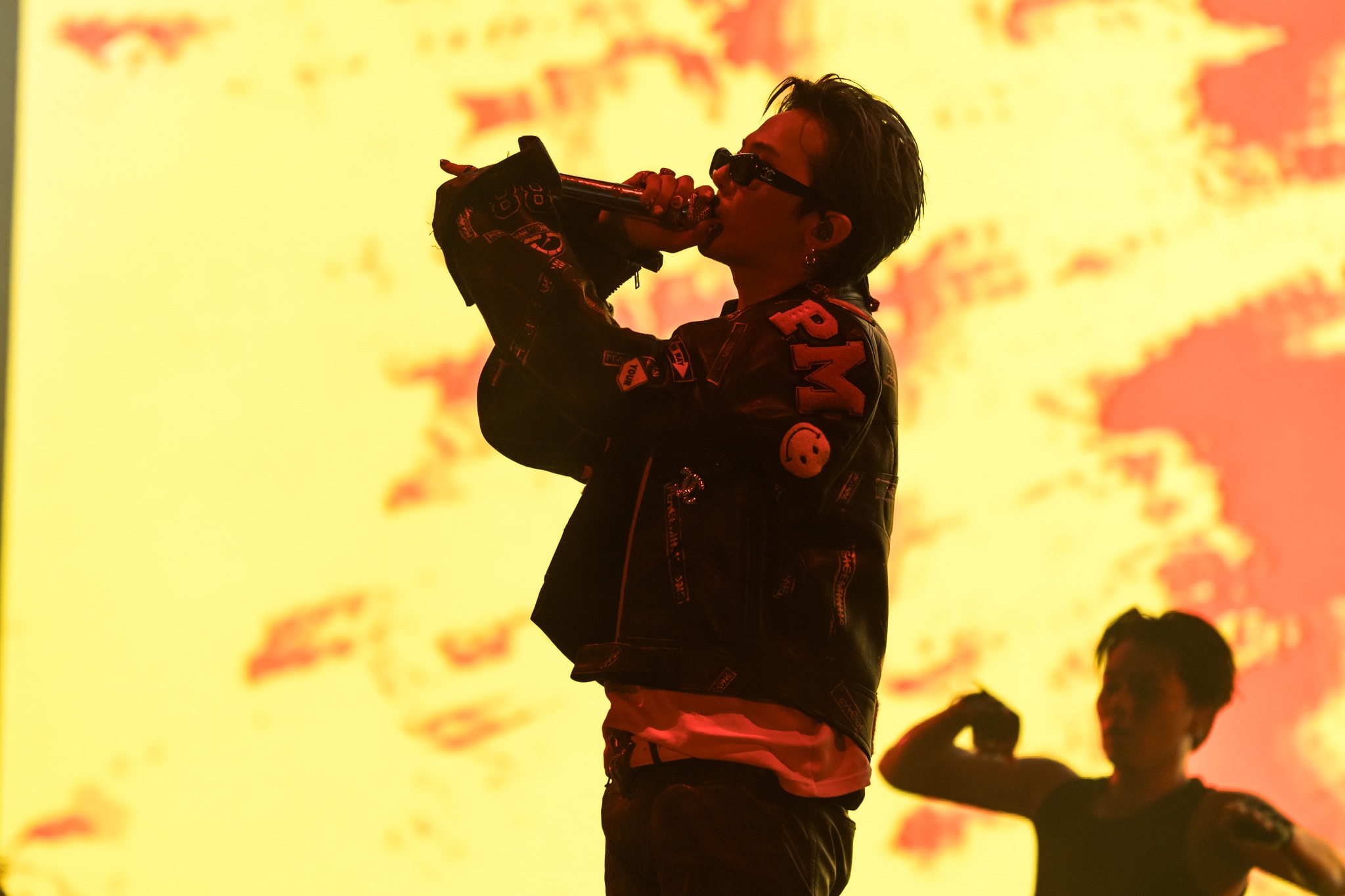 GD也没让大家失望,身穿彩色玫瑰外套登场,“Power”、“MichiGO”、“One Of A Kind”、“Crayon”、“Bullshit”、“Take Me”等新老曲目交替送上,还把巡演合作的韩国著名boxer WING请到现场,一起表演“Heartbreaker”。
