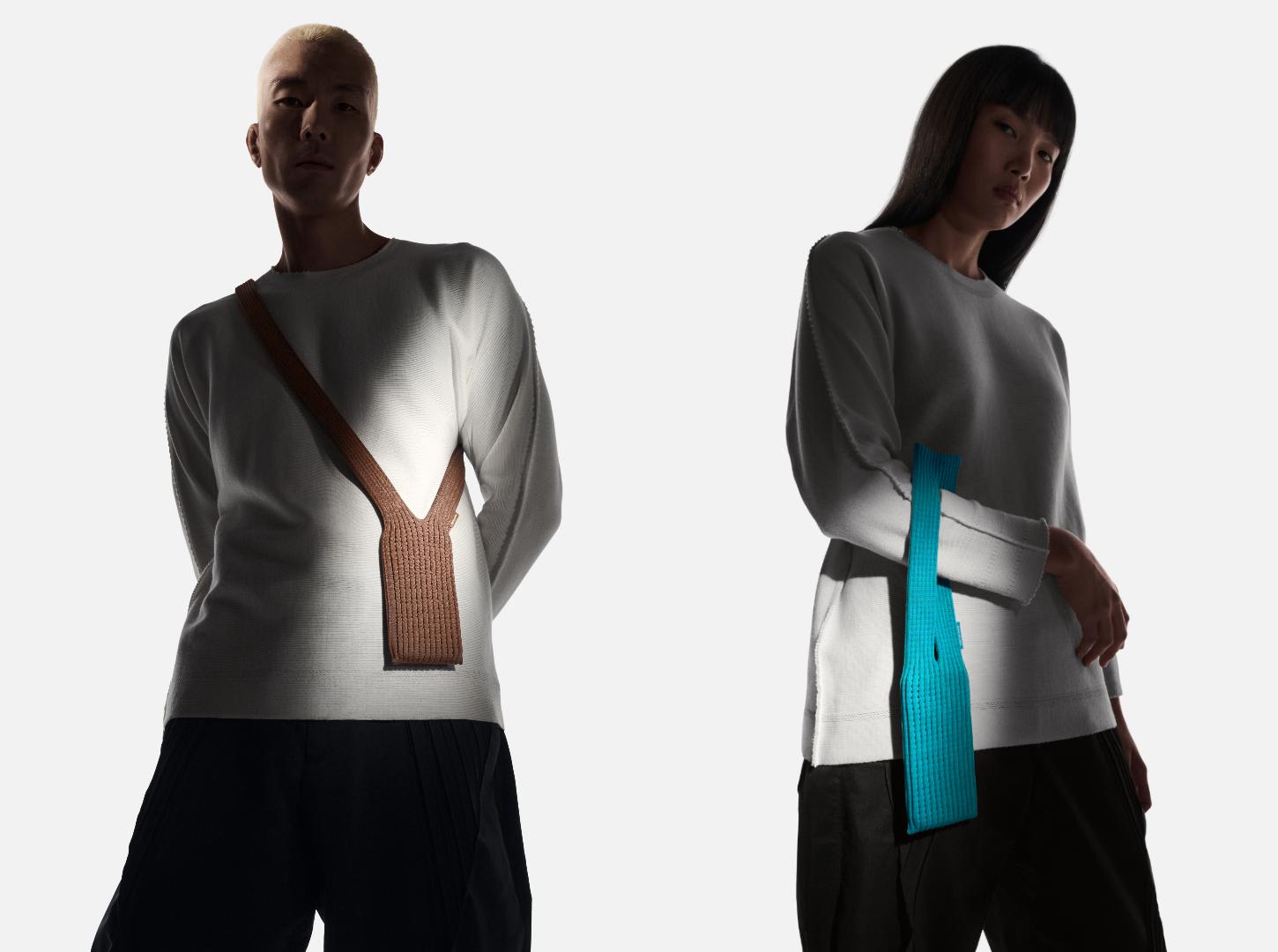 iPhone Pocket设计灵感源自“一块布”的概念,并以Issey Miyake经典 Pleats Please 褶皱风格呈现,独一无二的 3D 编织结构可收纳任何款式的 iPhone 及各种可放入口袋的小物。
