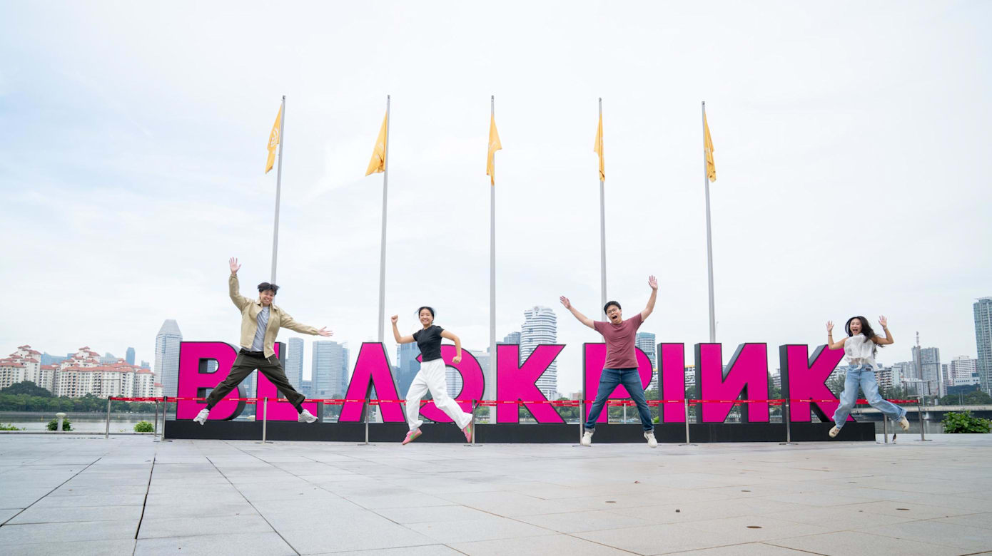 BLACKPINK in your area!K-pop最夯女团11月28日登陆本地一连举办3场“Deadline”演唱会,全岛也掀起粉色旋风,从樟宜机场到国家体育场周边都有应援活动,全城能感受BLACKPINK魅力。