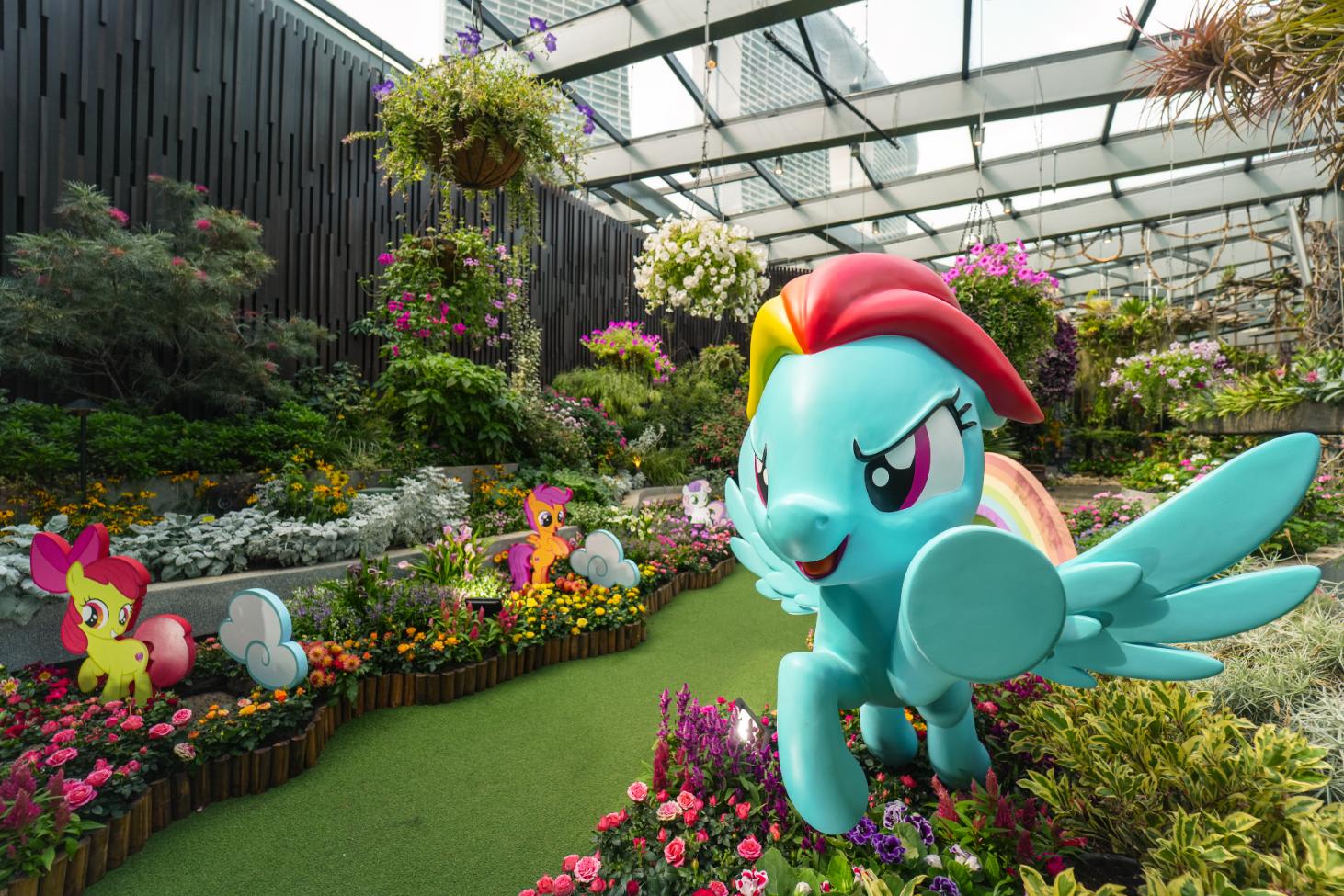 带着一家大小踏入滨海湾花园奇幻花园(Floral Fantasy)举办的“小马宝莉:友谊花语”(Little Pony Petals of Friendship)花卉展,在缤纷花海中开启一场梦幻之旅。适逢马年,4位人气角色Rainbow Dash、Pinkie Pie、Fluttershy与Twilight Sparkle换上融入中华传统色彩与花卉元素的新装,在精心设计的花艺景观中亮相,吸睛十足。