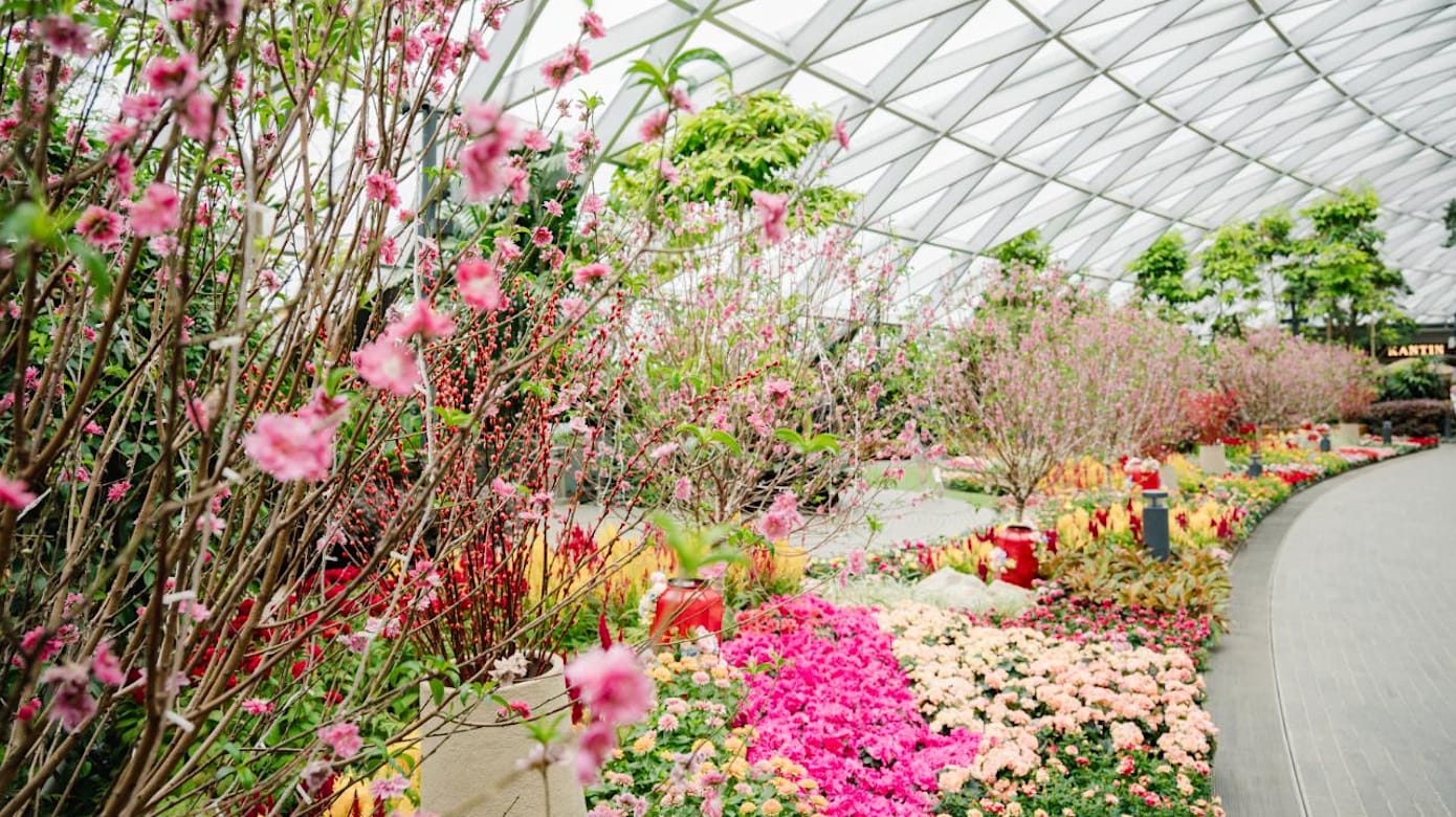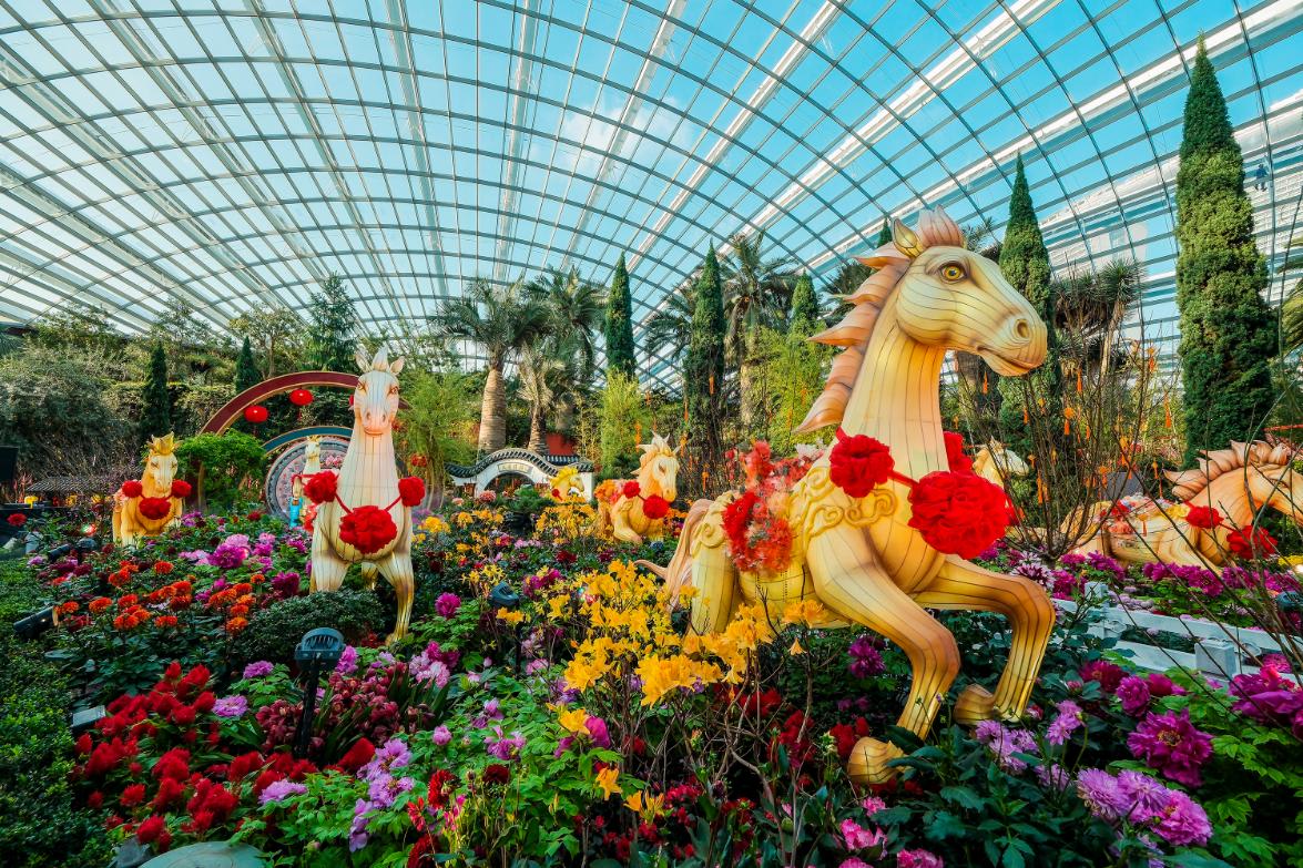 到滨海湾花园花穹,打卡春花盛开、骏马奔腾的喜气景象!