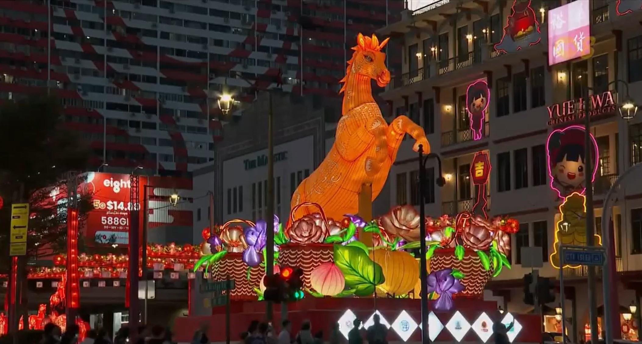 牛车水每逢新春灯饰璀璨,今年灯饰以“万马奔腾,喜迎新春”为主题,最大亮点是位于新桥路和克罗士街上段、8.8m高的金黄色骏马,融合中国传统剪纸艺术元素,在灯光下生动气派。围绕骏马的3个区域共有60件骏马灯饰,适合夜晚慢慢逛、拍照留影。