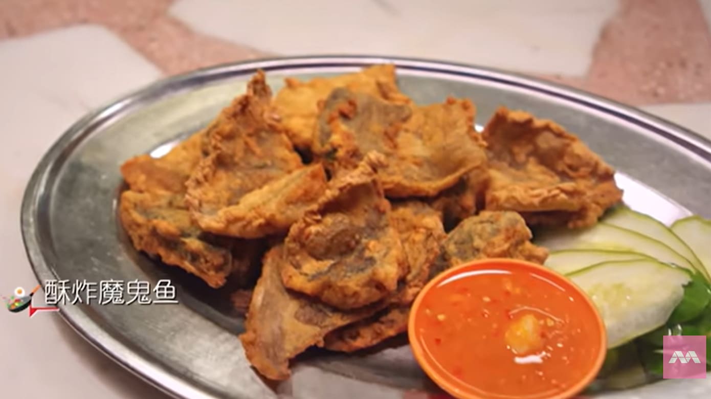 酥炸魔鬼鱼炸至连骨都酥香可食,别一般常见的叁巴烧烤魔鬼鱼。