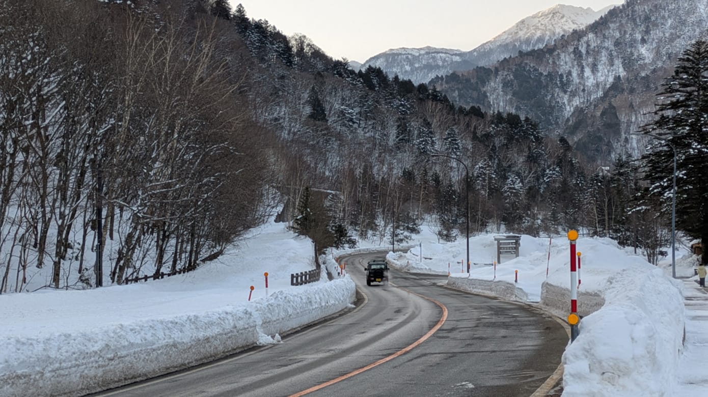 目的地在山脉另一端。与其说成翻山越岭,不如说是穿山而行,一条接一条的隧道,把车子带入山体内部,再从另一侧破雪而出。出了隧道,雪明显更深,空气更冷冽,仿佛踏入更深层的冬天。
