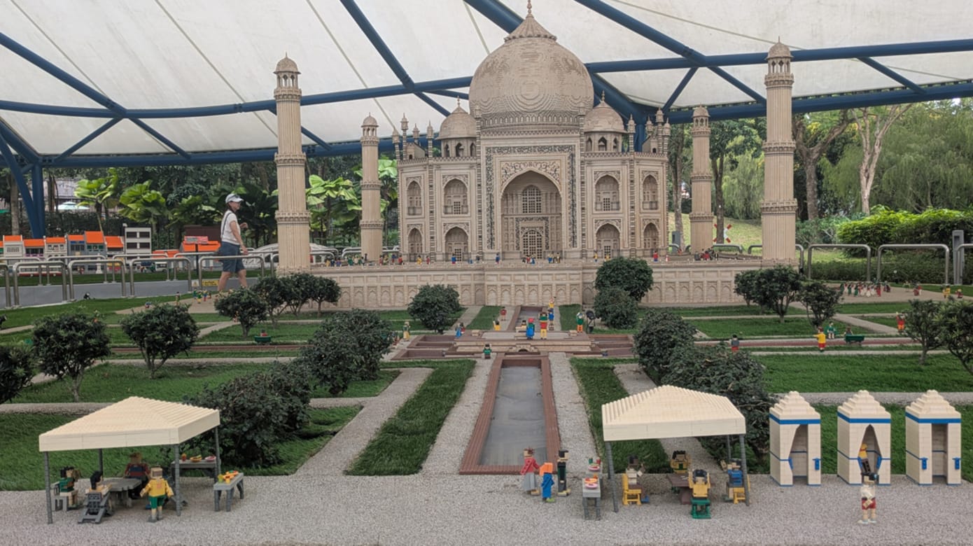 目前乐园共分为8大主题区,涵盖刺激型游乐设施、亲子友善的互动项目、动手拼砌的乐高工作坊,以及最具代表性的迷你乐园(Miniland)。以积木打造的微缩世界,也是乐高乐园最具标志性的区域。这里运用超过3000万块乐高积木,按1:20的比例重现17个亚洲国家的经典地标与城市风貌,包括泰姬陵、吴哥窟、北京故宫等熟悉景点。模型细节精致,部分场景更加入机械结构,只要按下按钮,火车、船只与人偶便会动起来,让整座城市在积木世界中活了过来。