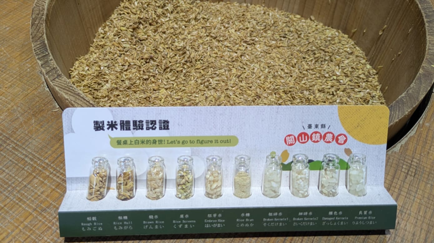 米拉从去壳到成为精米要经过好几个步骤,展区里用木桶装了不同阶段的示范品,包括稻壳、粗糠、糙米、屑米、胚芽米、米糠、粗碎米、细碎米、杂色米、良质米。游客从每一个木桶取小量样本,装在小玻璃瓶里,做成展示品带回家留念。还可体验机器包装,把一罐关山米亲手封装带走。