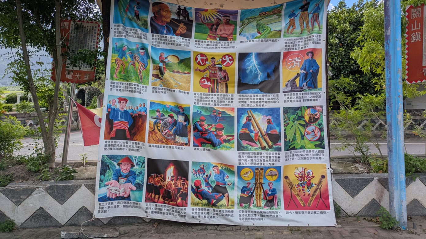 部落最津津乐道的是历史事件“雷公火之役”。1896年,清兵携带枪炮攻打部落,族人只能以竹炮应战。竹炮并无杀伤力,发出阵阵声响恐吓,再加上竹筒火把照亮溪谷,营造出敌人四伏的假象。清兵彻夜朝火把射击,弹药耗尽之际,部落青年挥舞番刀与清兵肉搏,击退敌军。如今,活动中心墙上还挂着布条,图文并茂地讲述这一段英勇事迹。