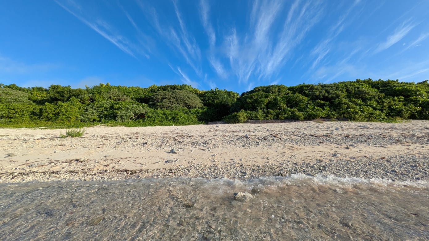 建造度假村时为了不破坏岛屿生态,刻意选了靠海的这片荒地,不需破坏原生树木,也保留了沙滩的本来面貌。沙滩上布满珊瑚礁石,不适合游泳,也因此没有什么游人,只有风声浪声,一派宁静。