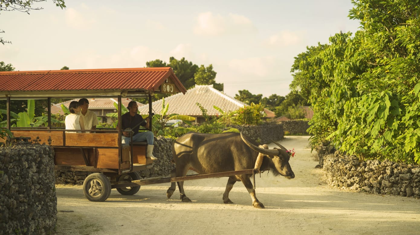 选择住宿隔夜的话,村子里也有民宿。不过对于国际旅客来说,入住度假酒店更为方便,岛上唯一的度假酒店是虹夕诺雅竹富岛(Hoshinoya Taketomi Island),下船后有车来接,数分钟车程即来到另一座琉球村落——复刻传统琉球聚落风情的度假村。